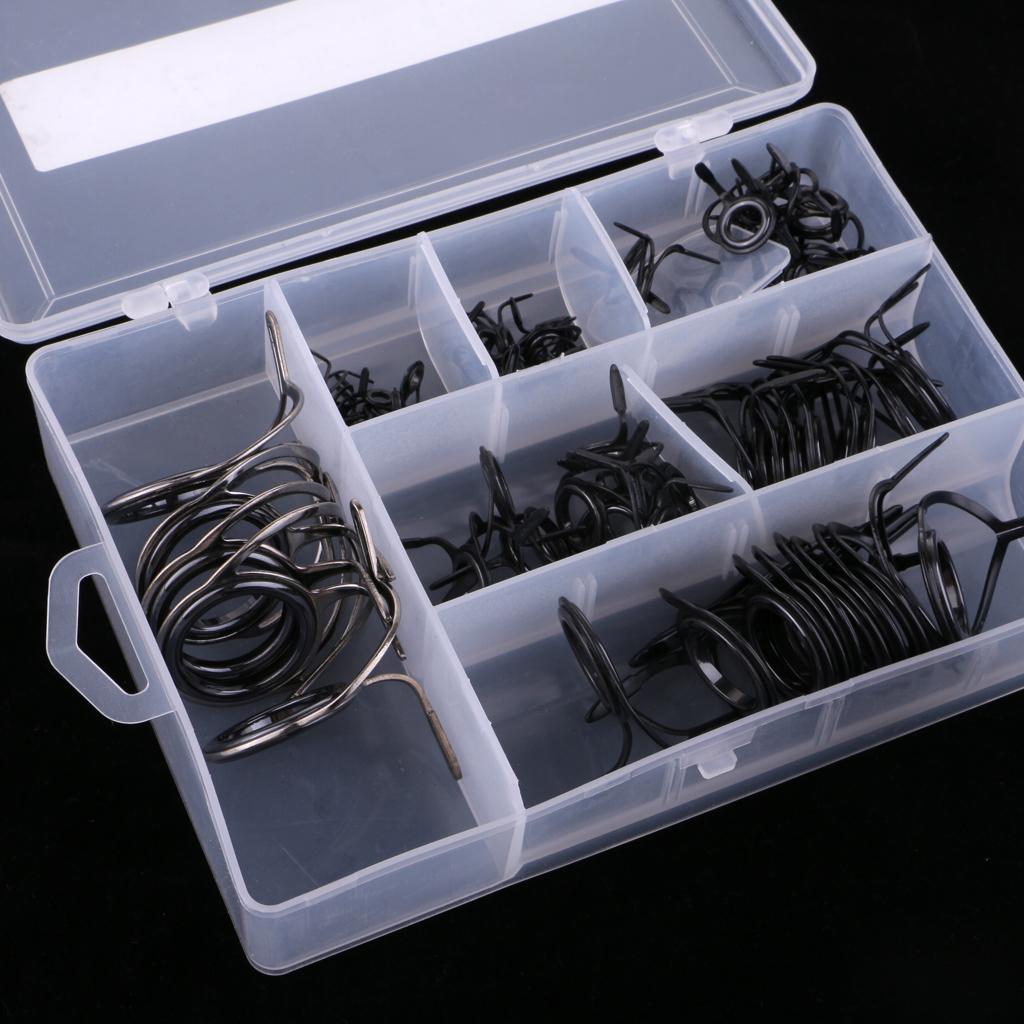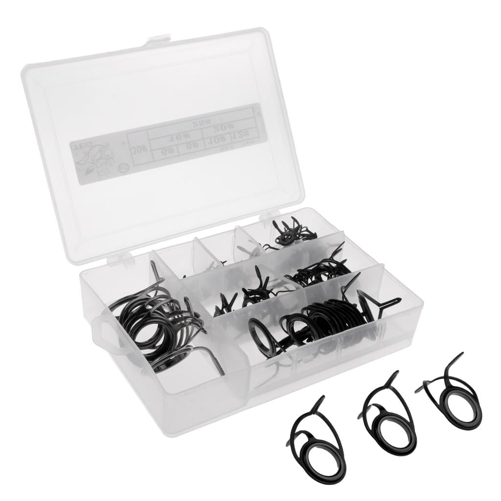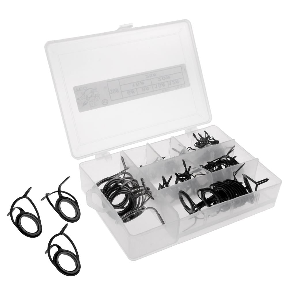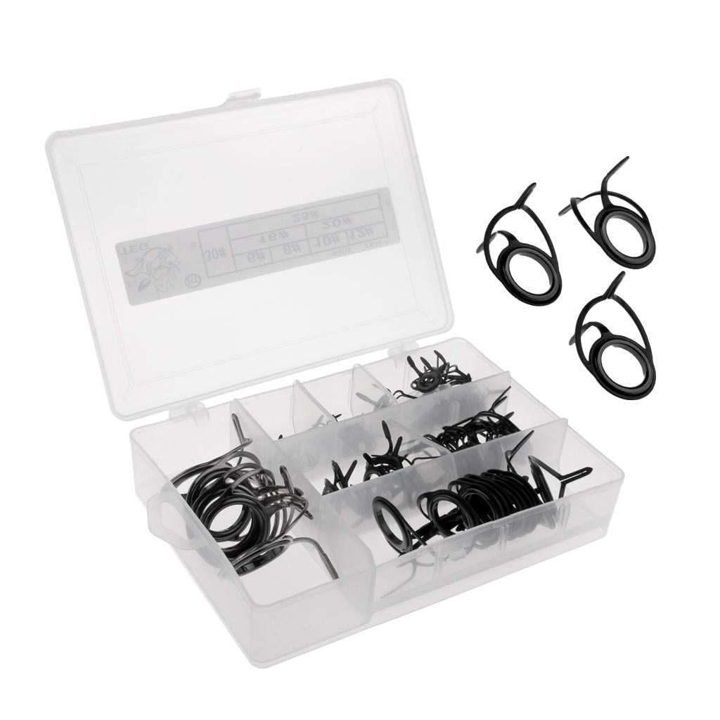75x Stainless Steel Fishing Rod Guide Ring Rod Repair Kit DIY Tip Ring Black