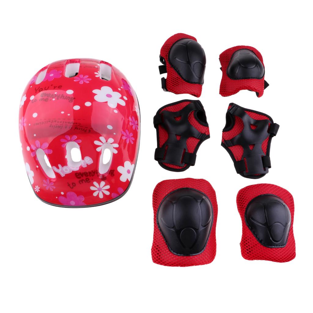 7 Pieces protective helmet, elbow, knee and wrist pad set