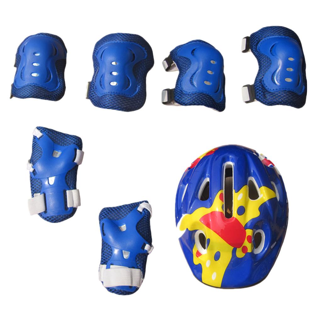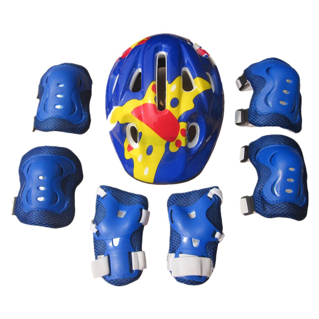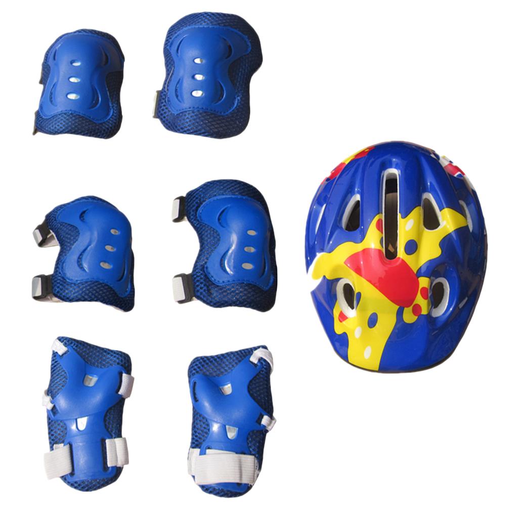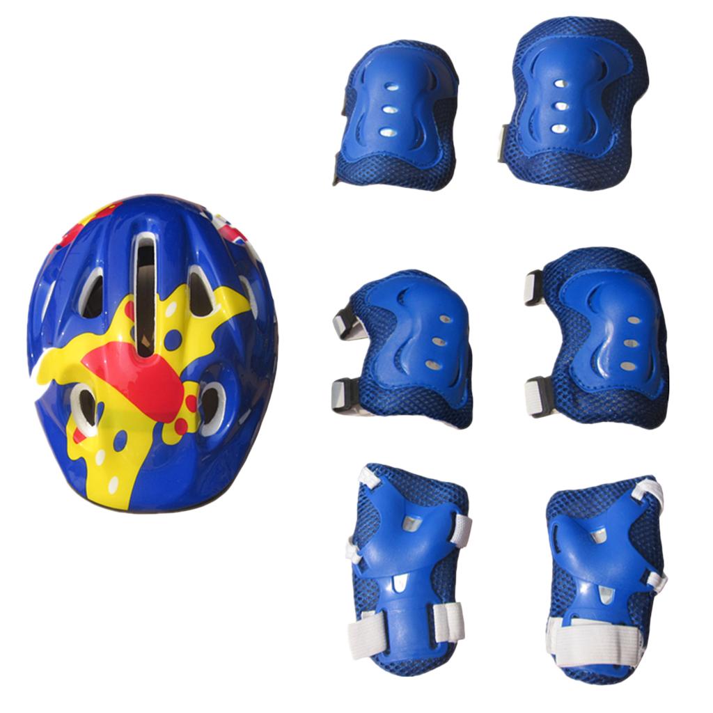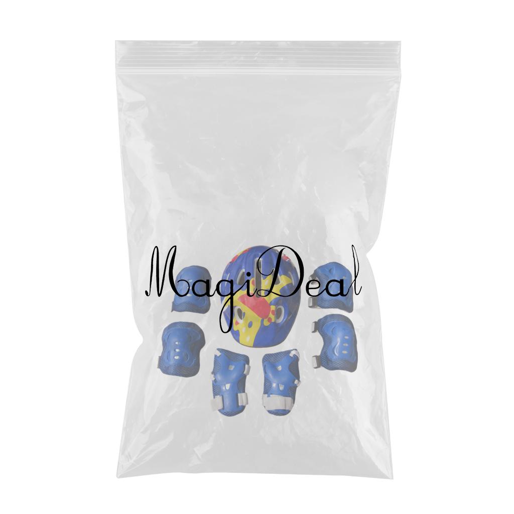 7 Pieces protective helmet, elbow, knee and wrist pad set in vivid pink, red and blue