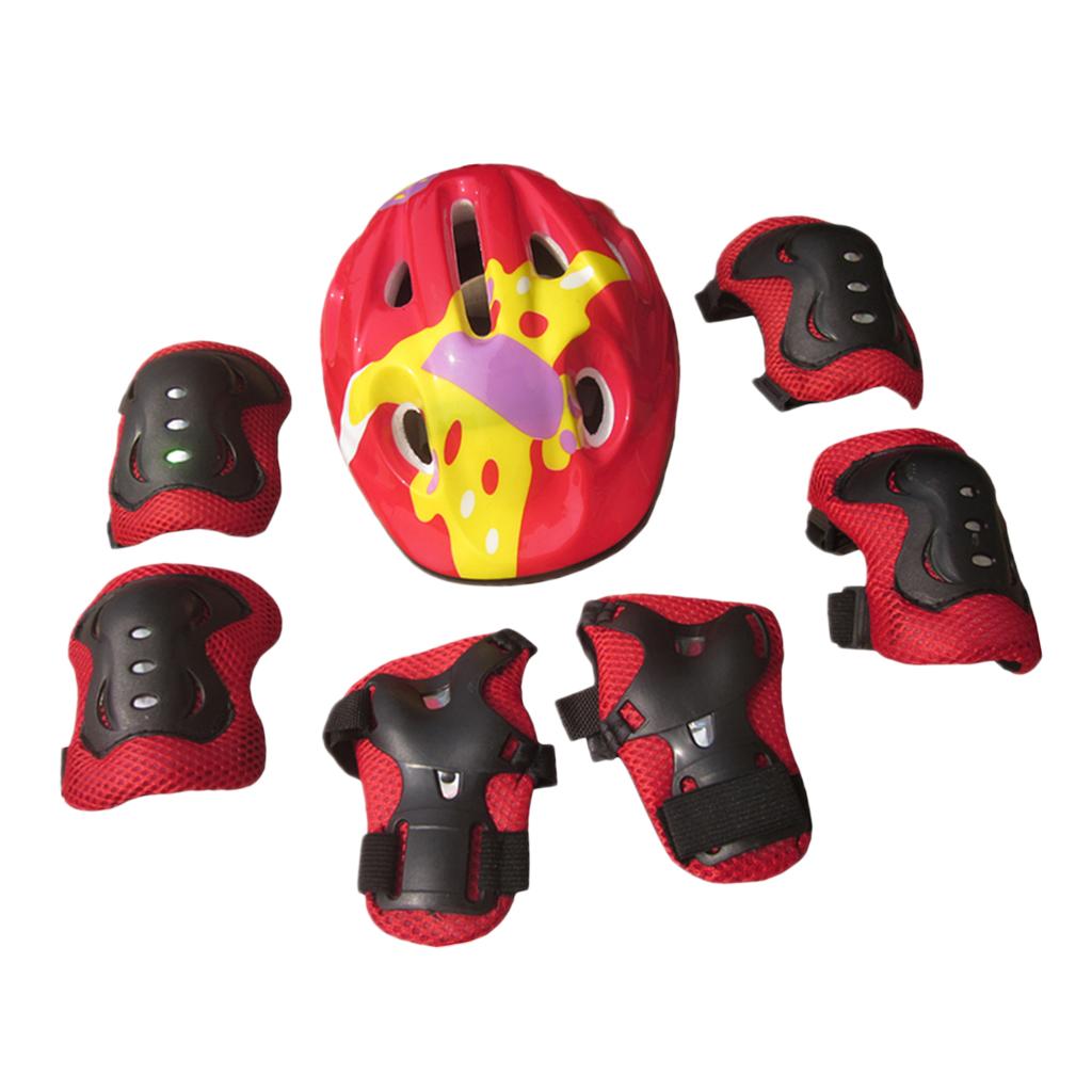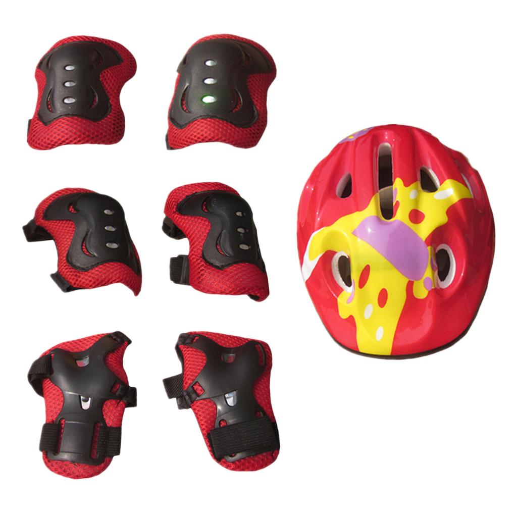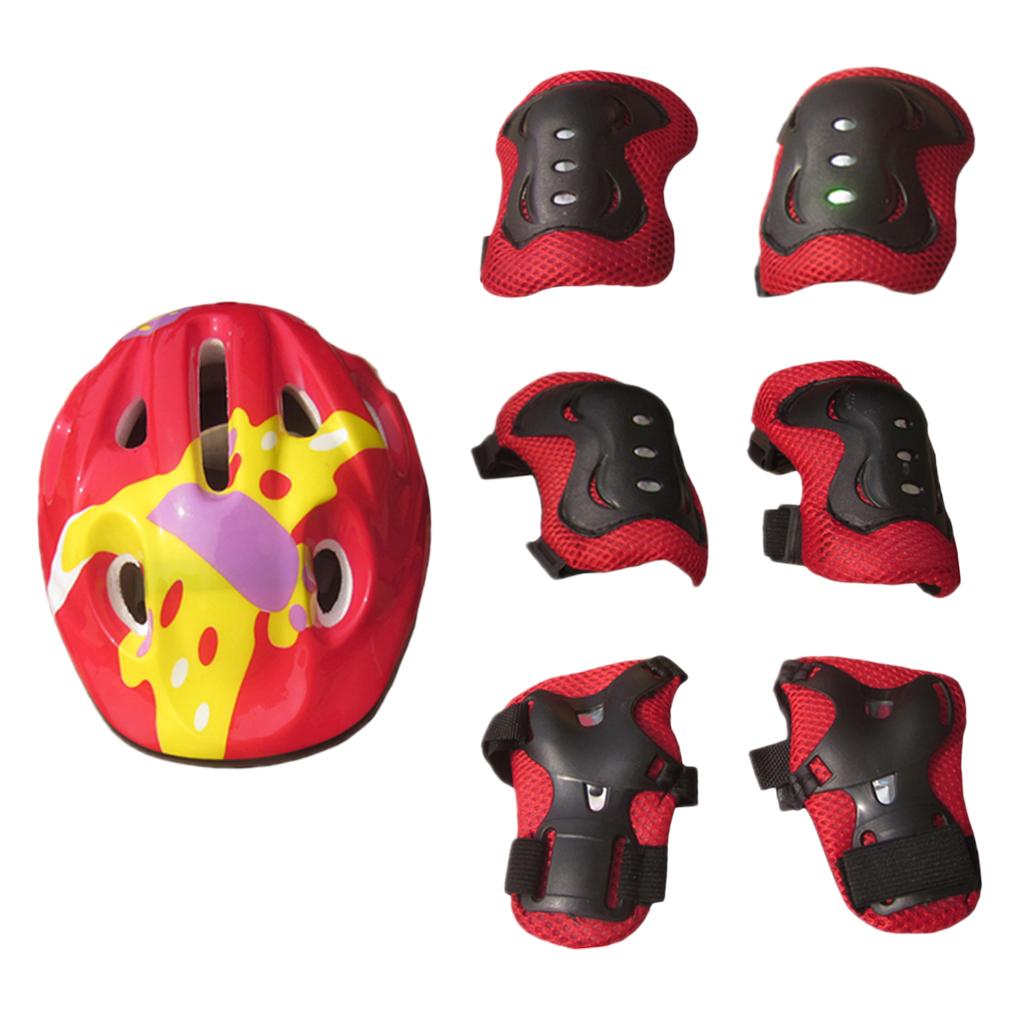 7Pcs Kid Child Roller Skating Scooter Helmet Knee Wrist Guard Elbow Pad Red