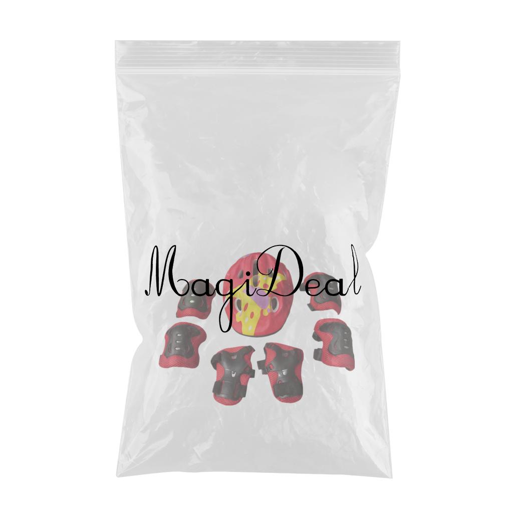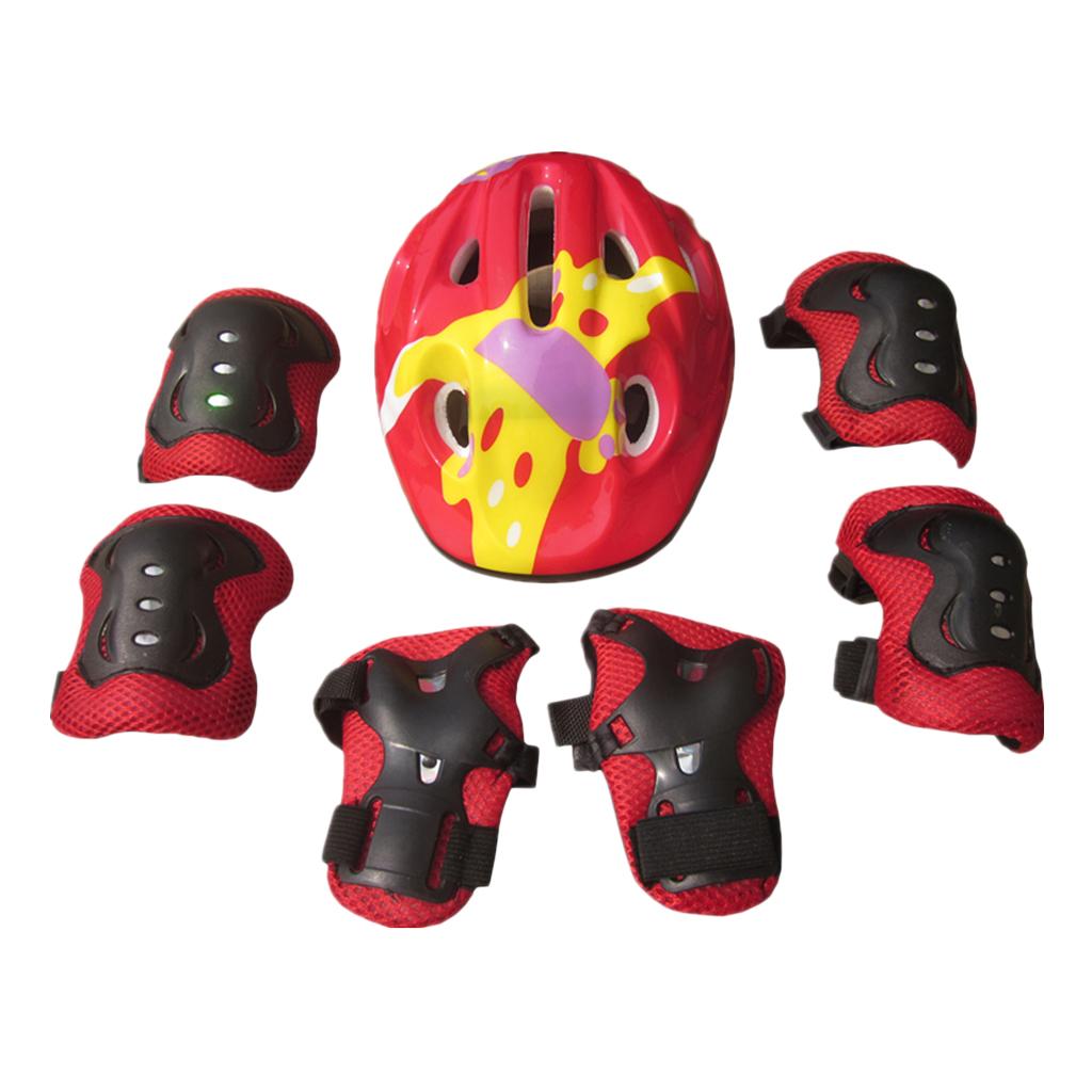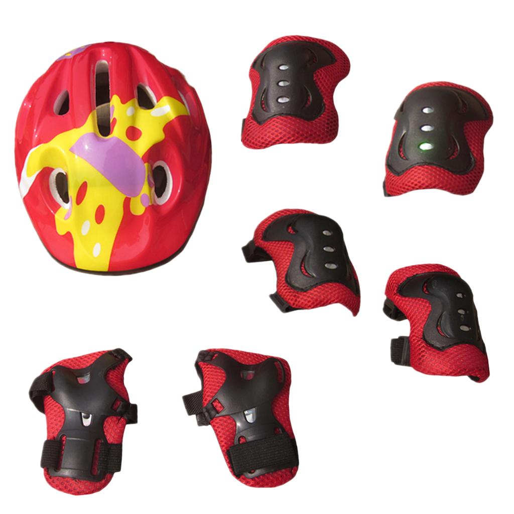 7Pcs Kid Child Roller Skating Scooter Helmet Knee Wrist Guard Elbow Pad Red