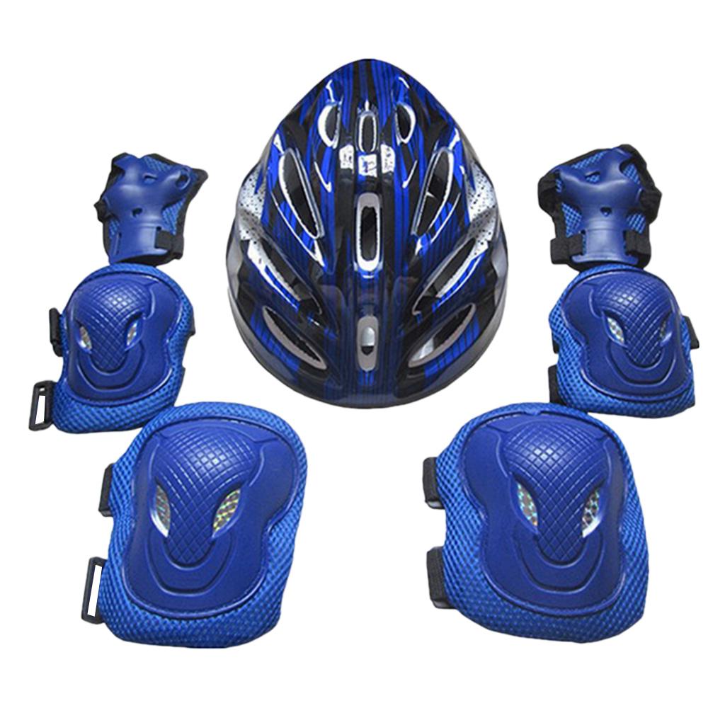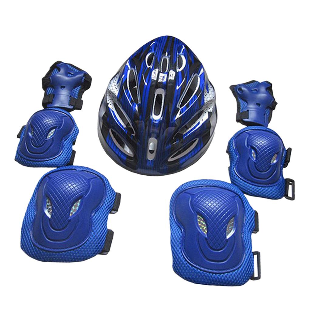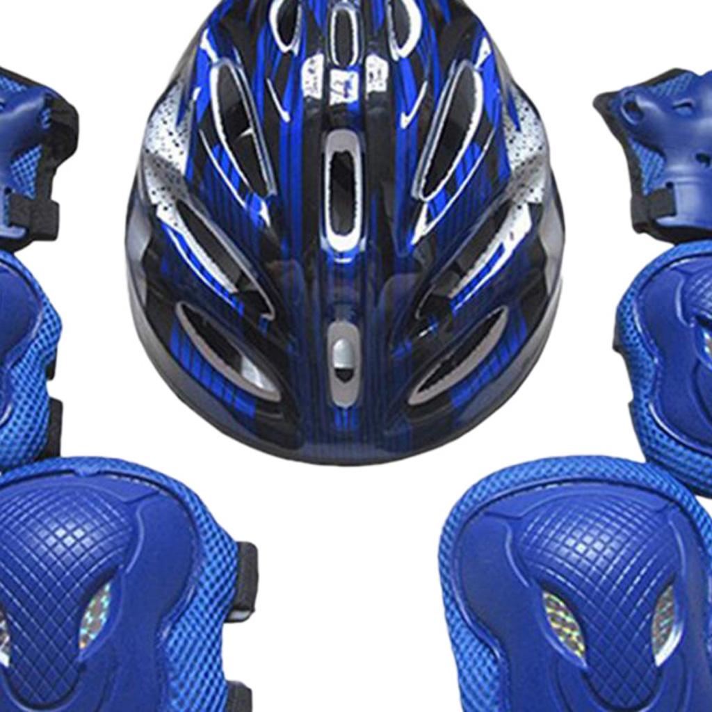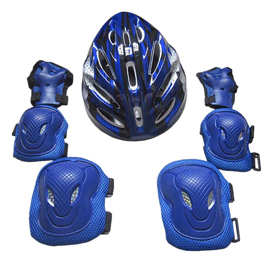 7x Adults Sports Protection Set Knee Pads Elbow Pads Hand Pads Helmet Blue