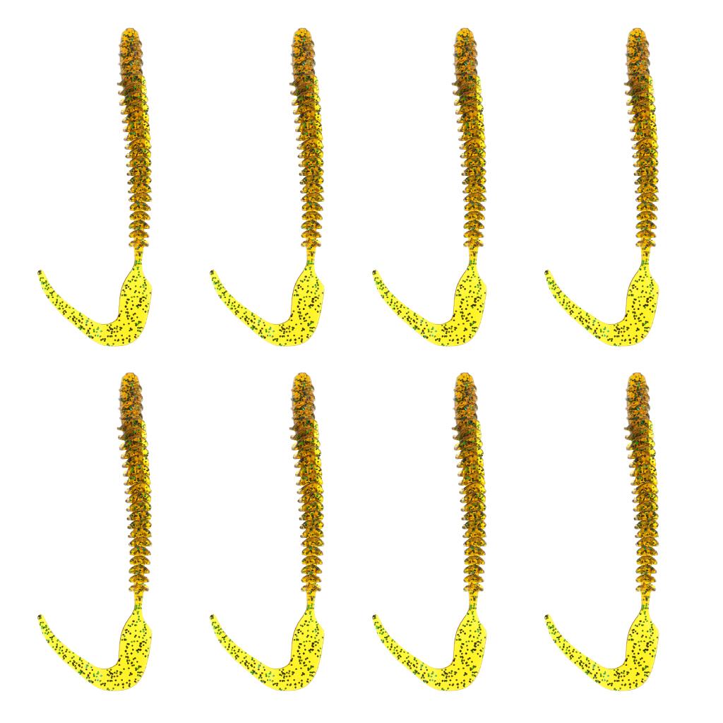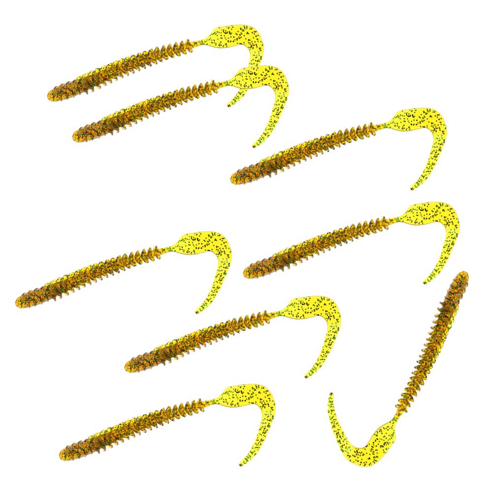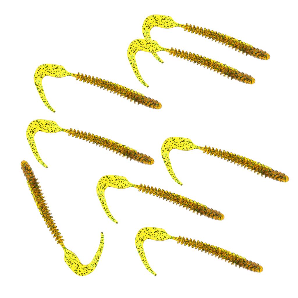 8pcs Soft Earthworm Worm Lures Fishing Baits Ribbed Body Curly Tail Lure Yellow Green