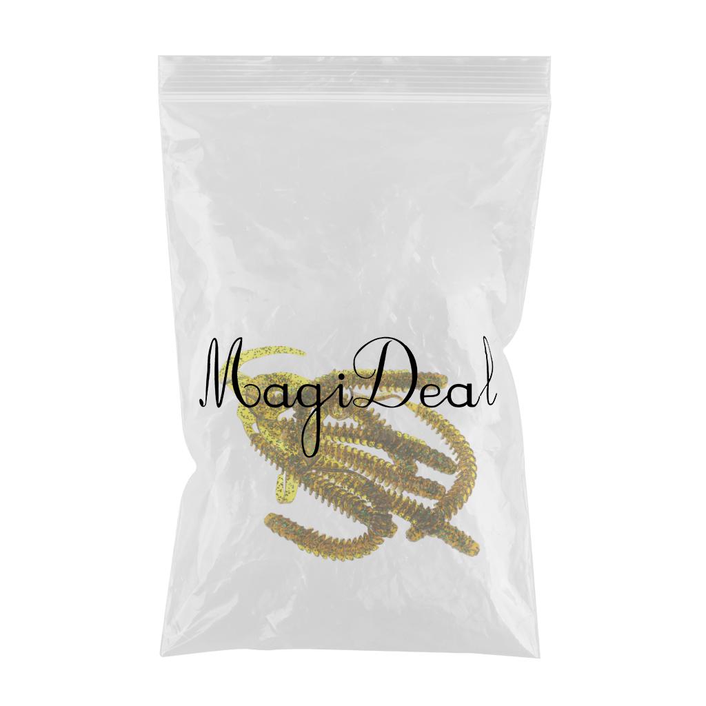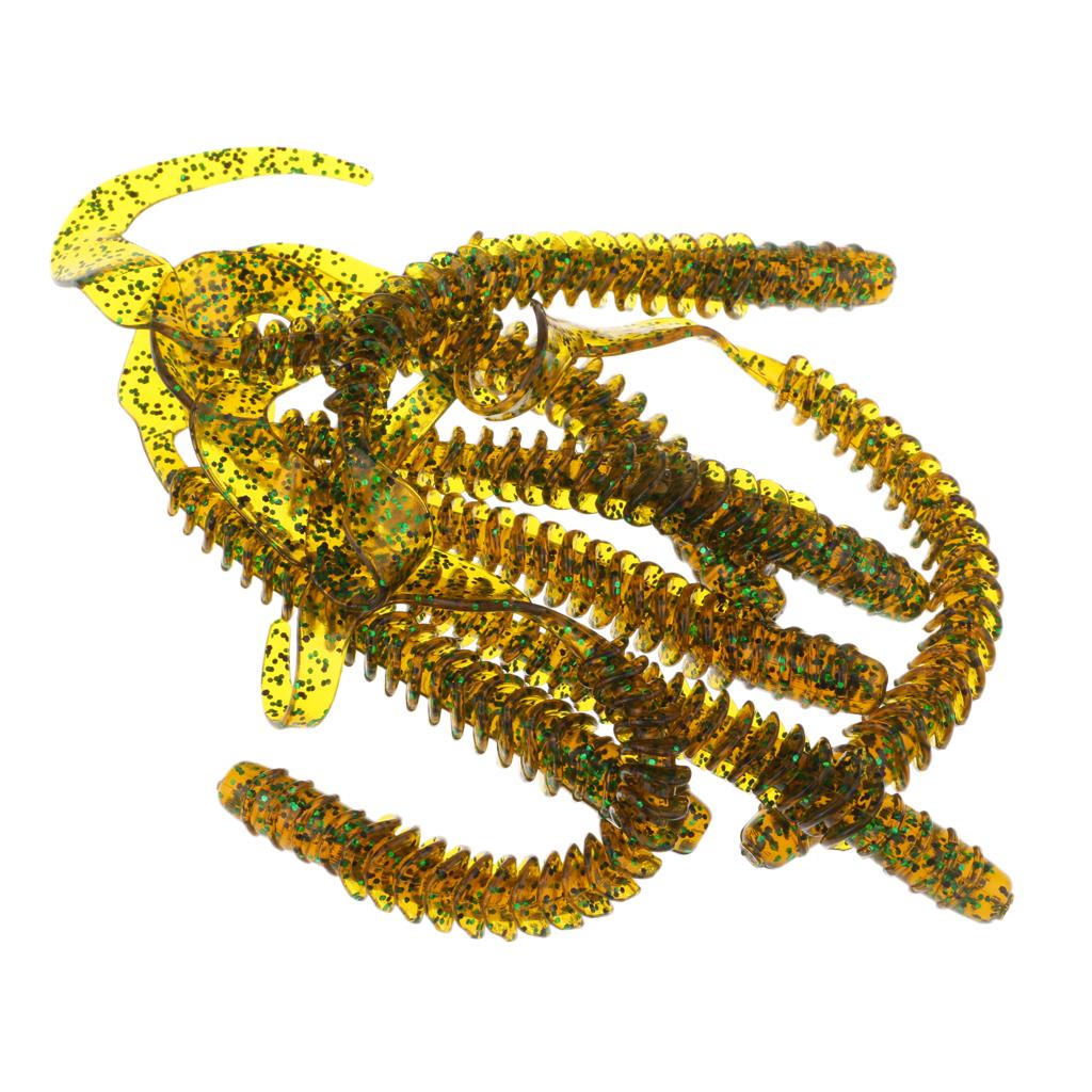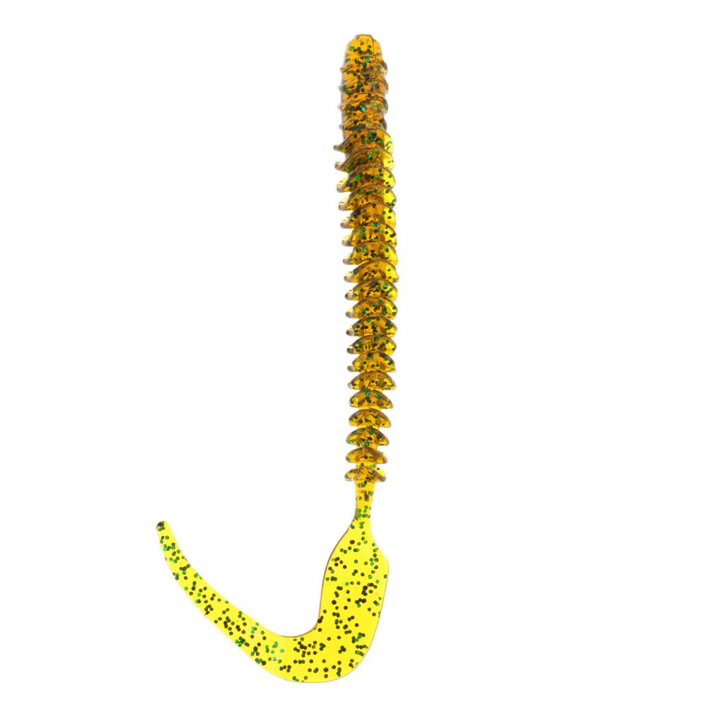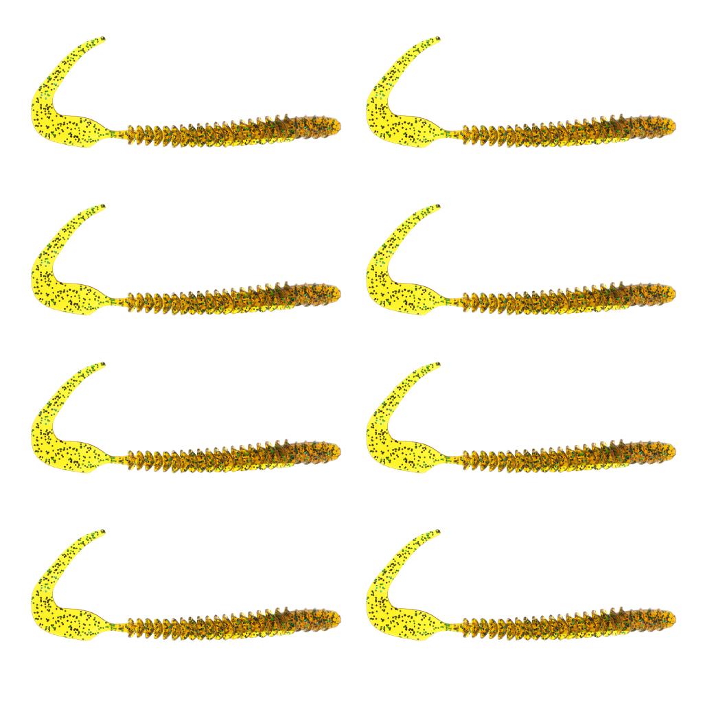 8pcs Soft Earthworm Worm Lures Fishing Baits Ribbed Body Curly Tail Lure Yellow Green