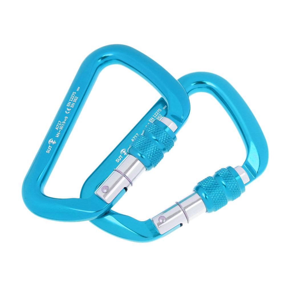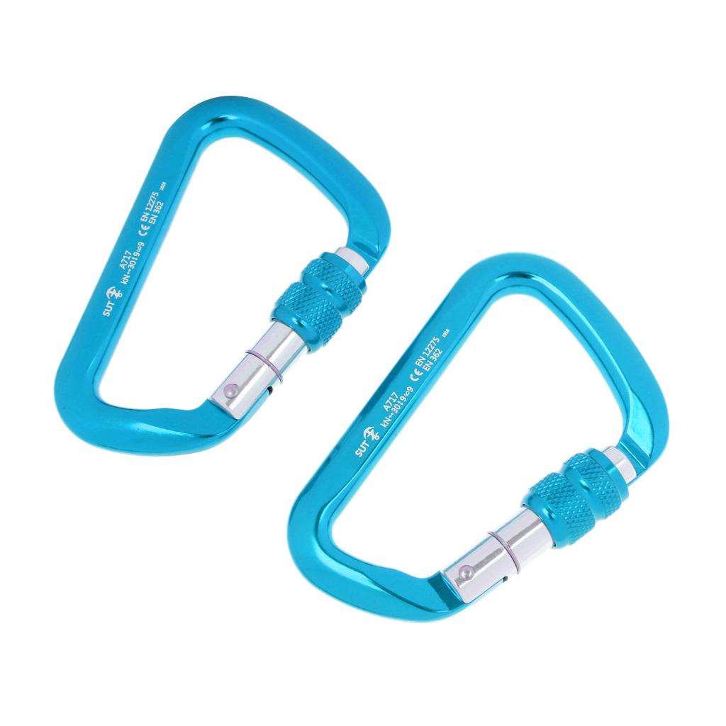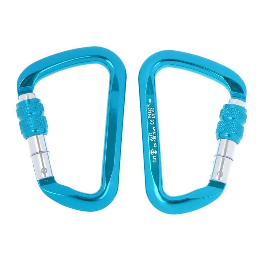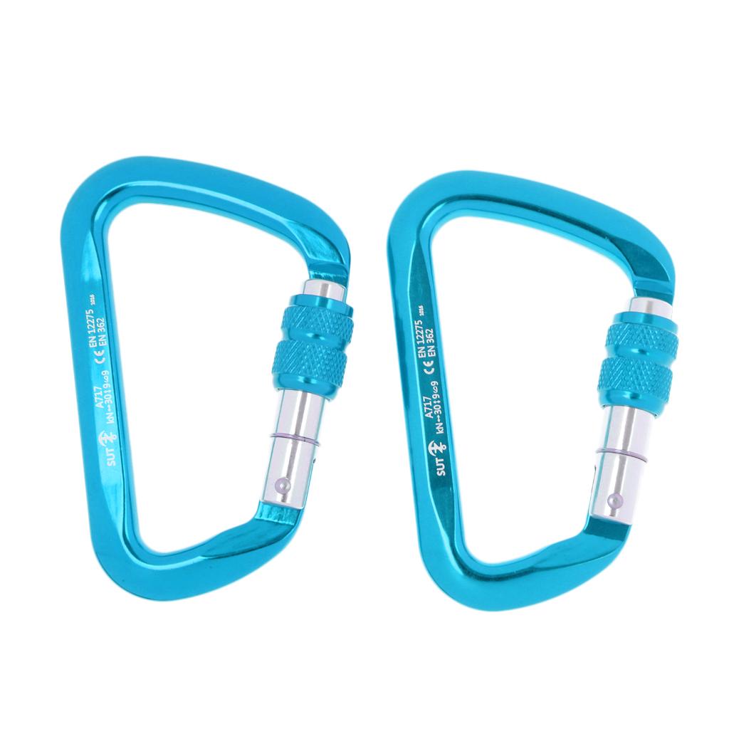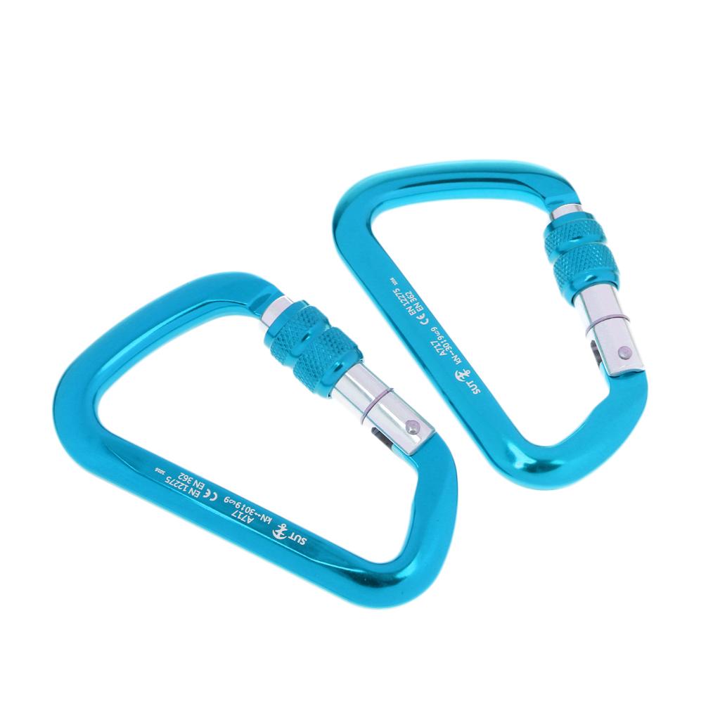 Aluminum D-Ring Carabiner Rock Climbing Screw Locking Karabiners 30KN Blue