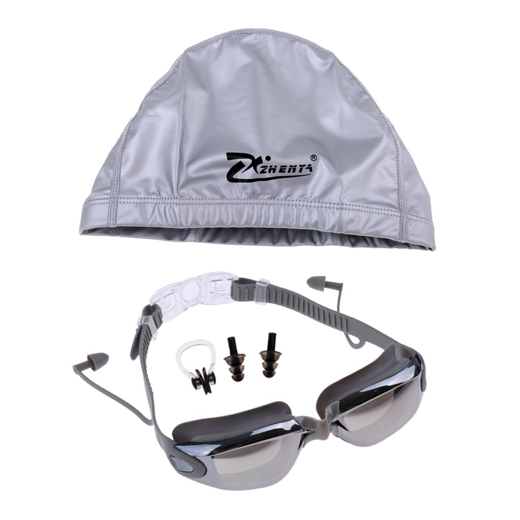 Swimming goggles with case, swim cap, nose clip and ear plugs