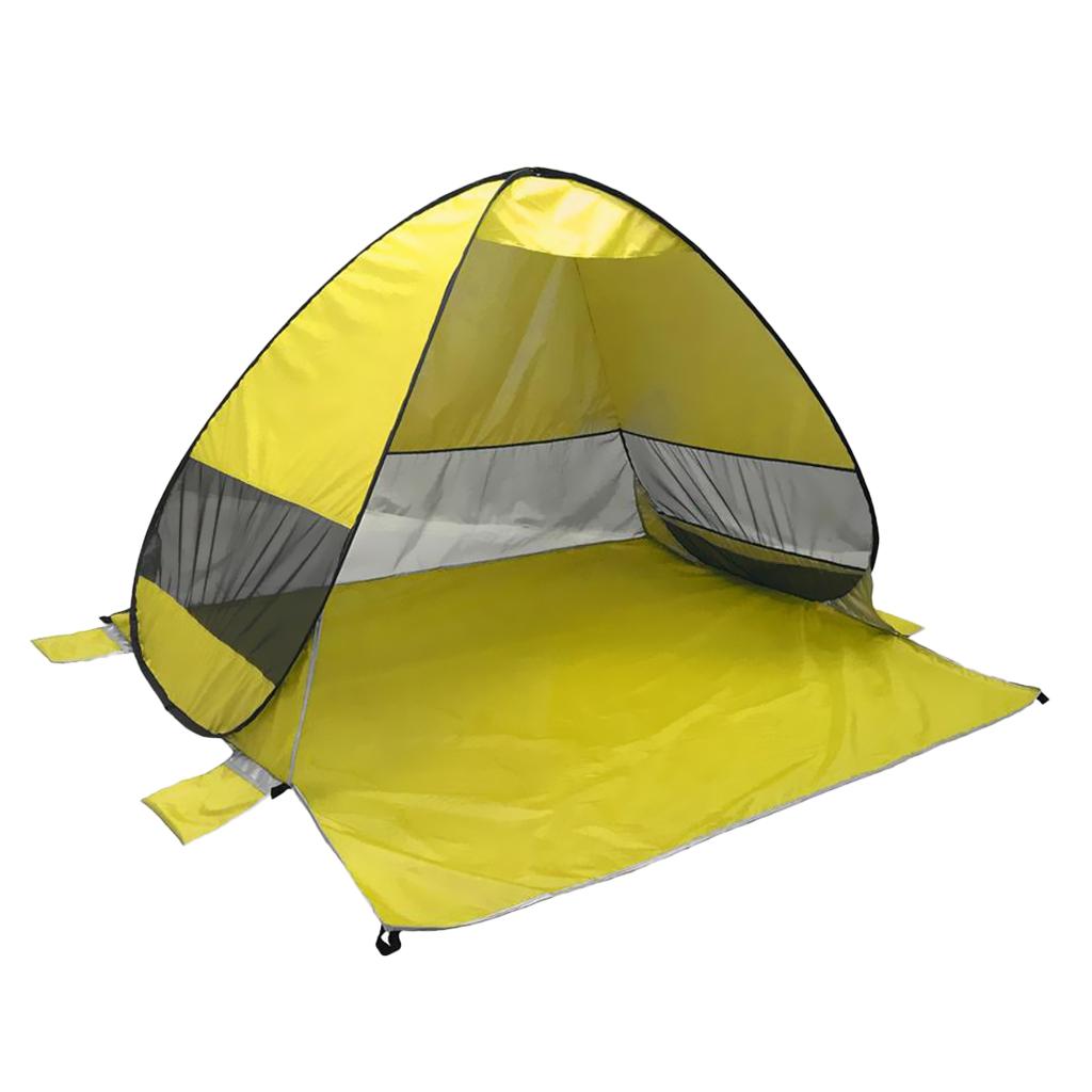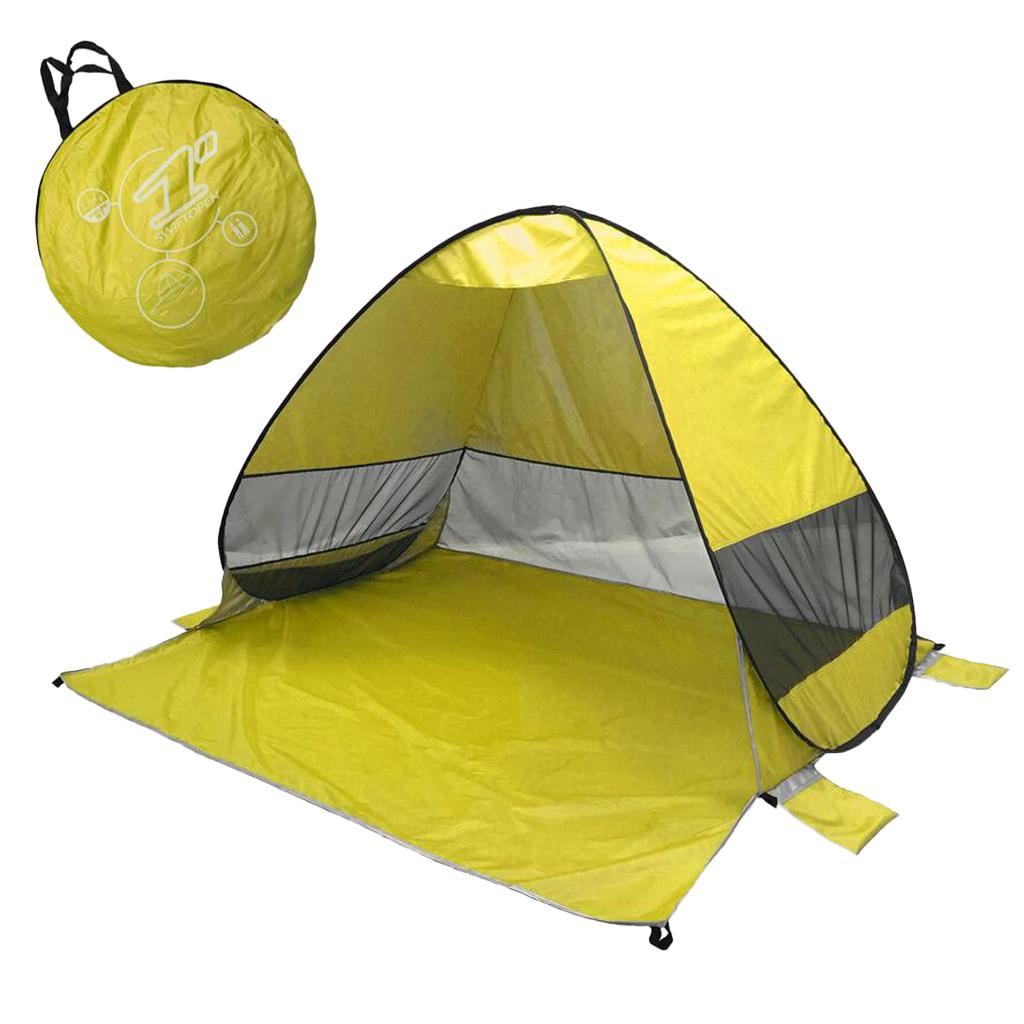 No assembly required, this tent is pop upped in a second after taking out from the carrying bag.