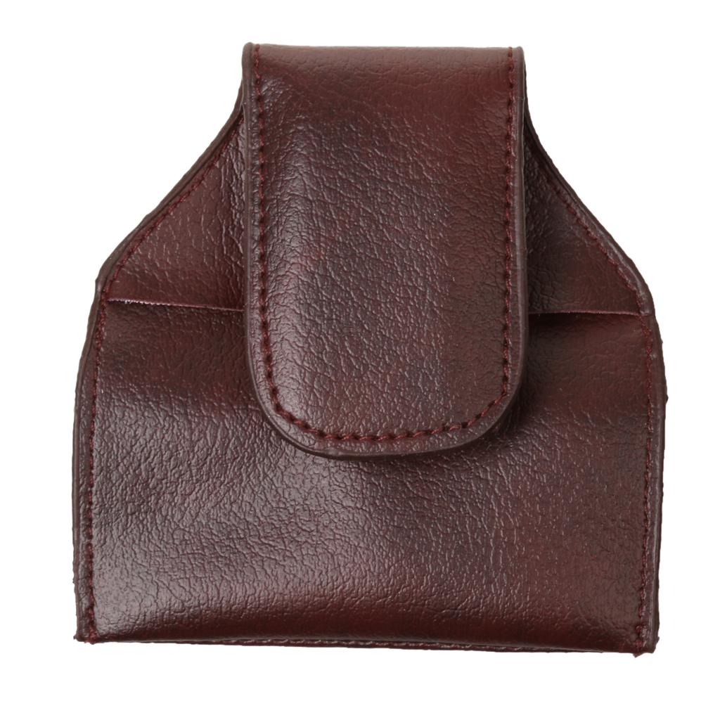 Billiard Snooker Pool Cue PU Leather Chalk Holder Pouch Bag w/Clip Brown