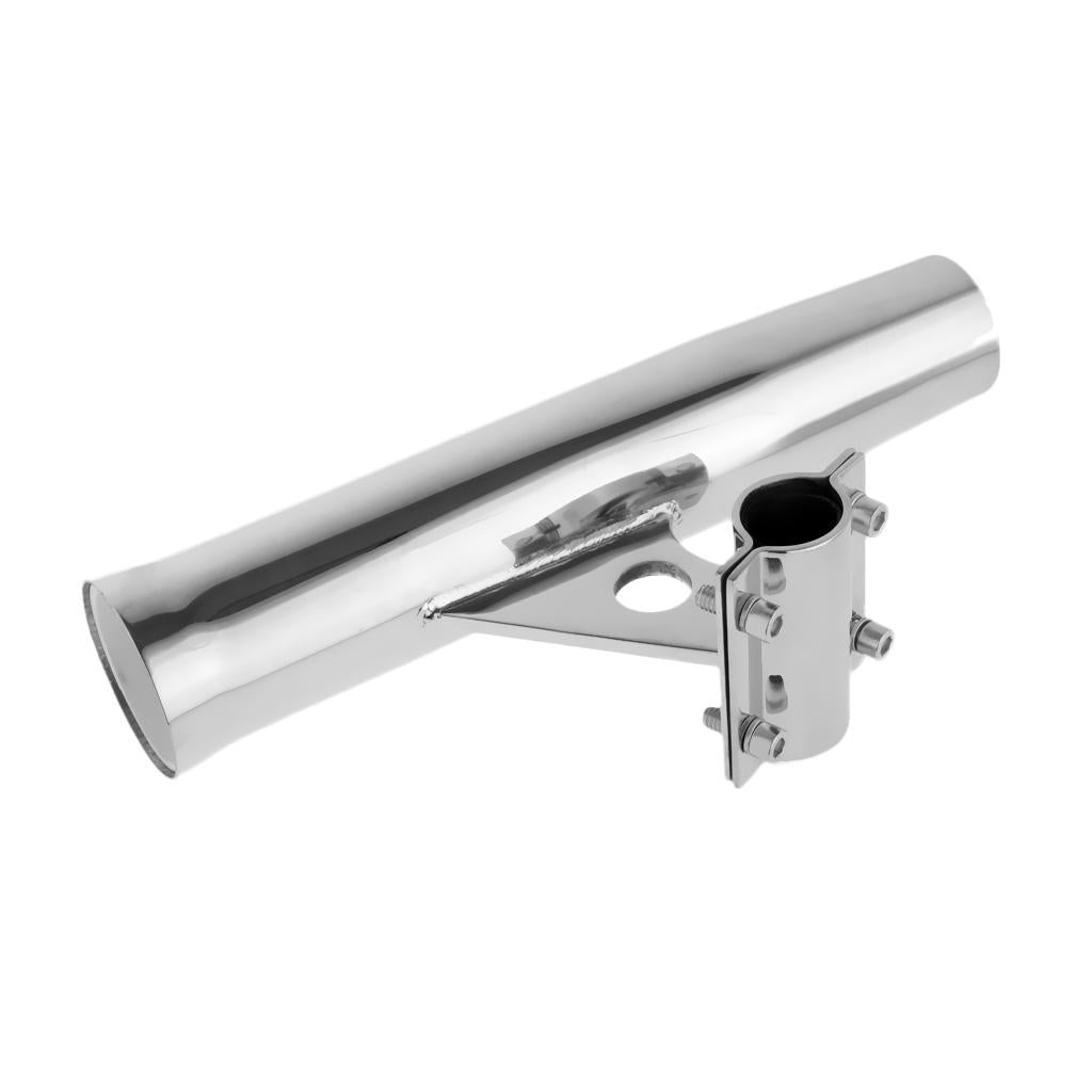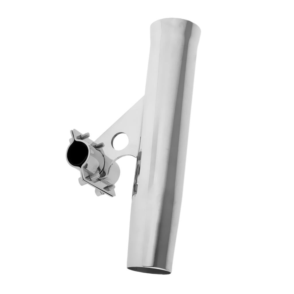 Marine grade 304 stainless steel rod holder with clamp-on mounting bracket.
