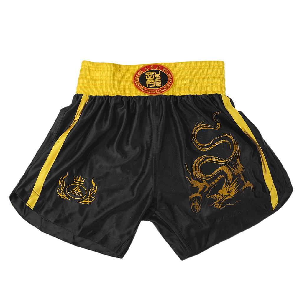 Boxing Martial Arts MMA Clothes Dragon Embroidered Uniform Shorts Black XL