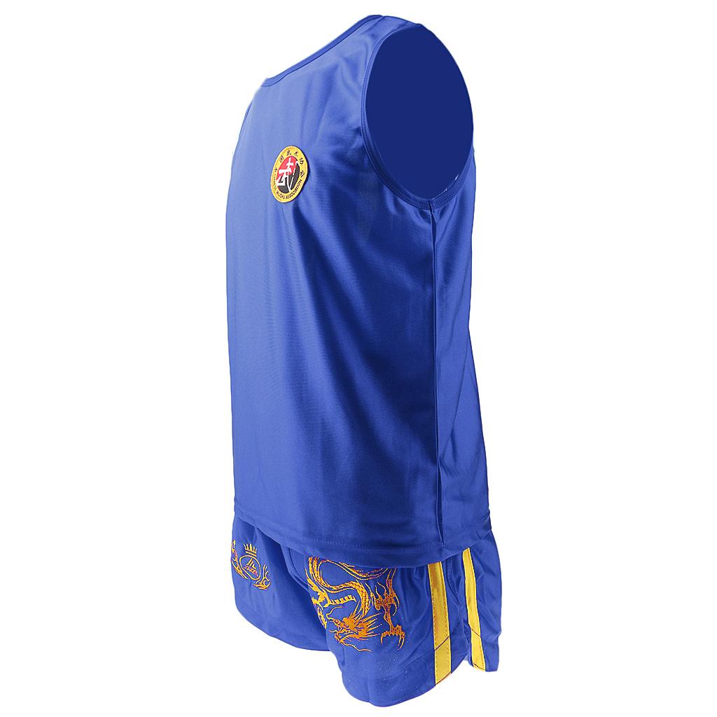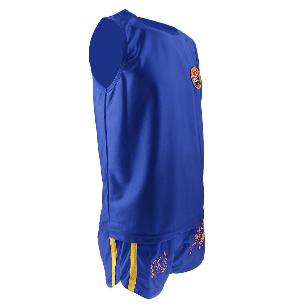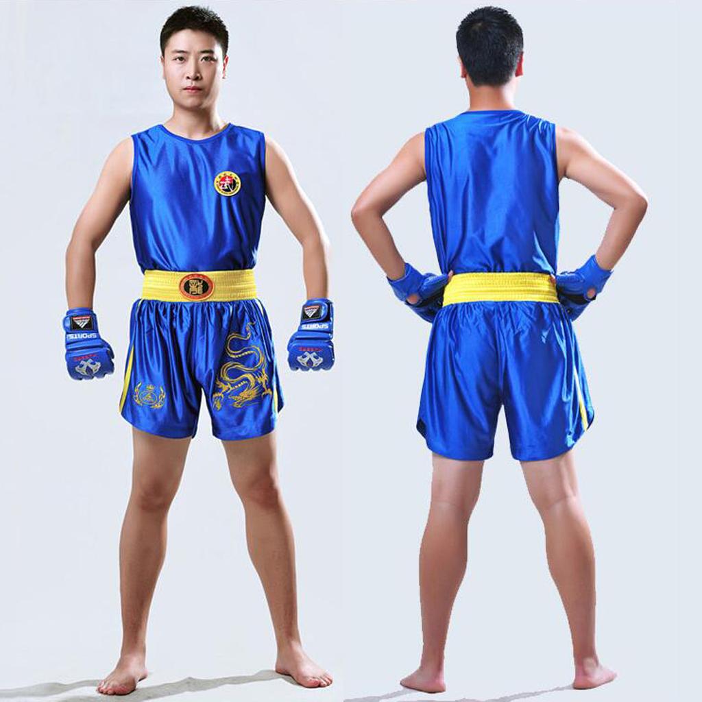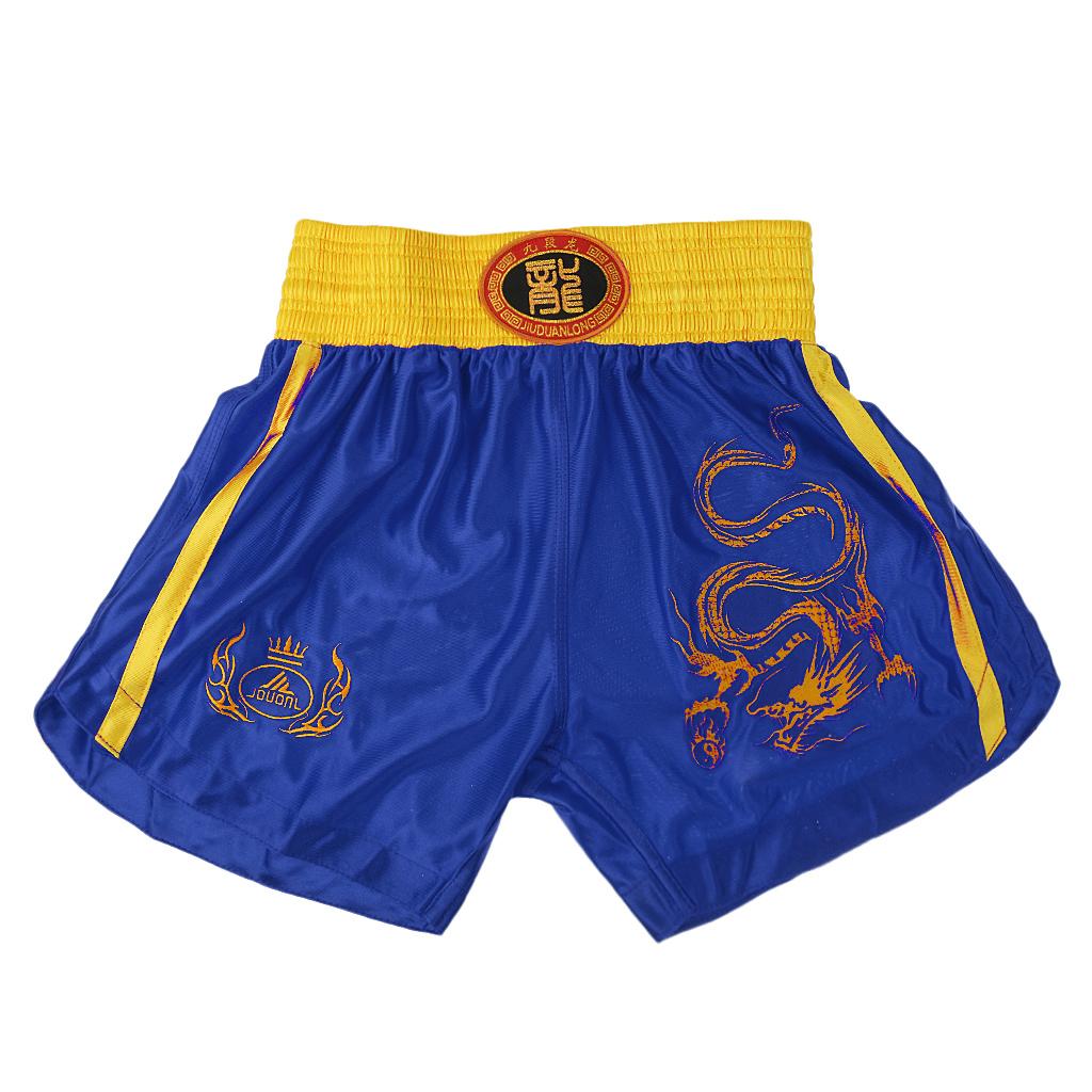 Boxing Martial Arts MMA Clothes Dragon Embroidered Uniform Shorts Blue L