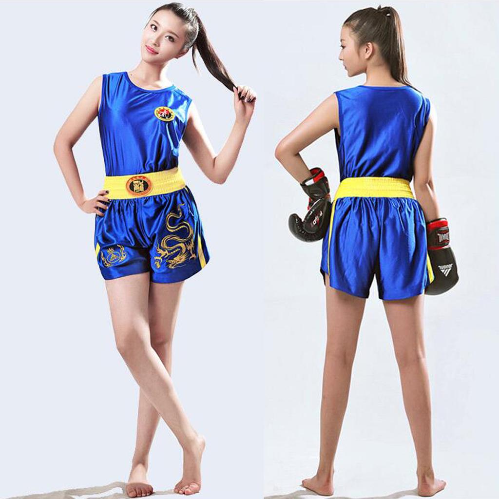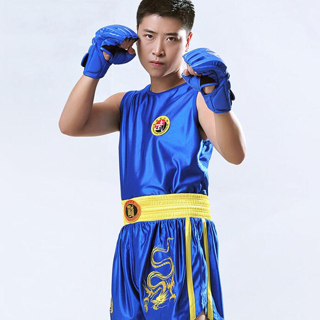 Boxing Martial Arts MMA Clothes Dragon Embroidered Uniform Shorts Blue XL