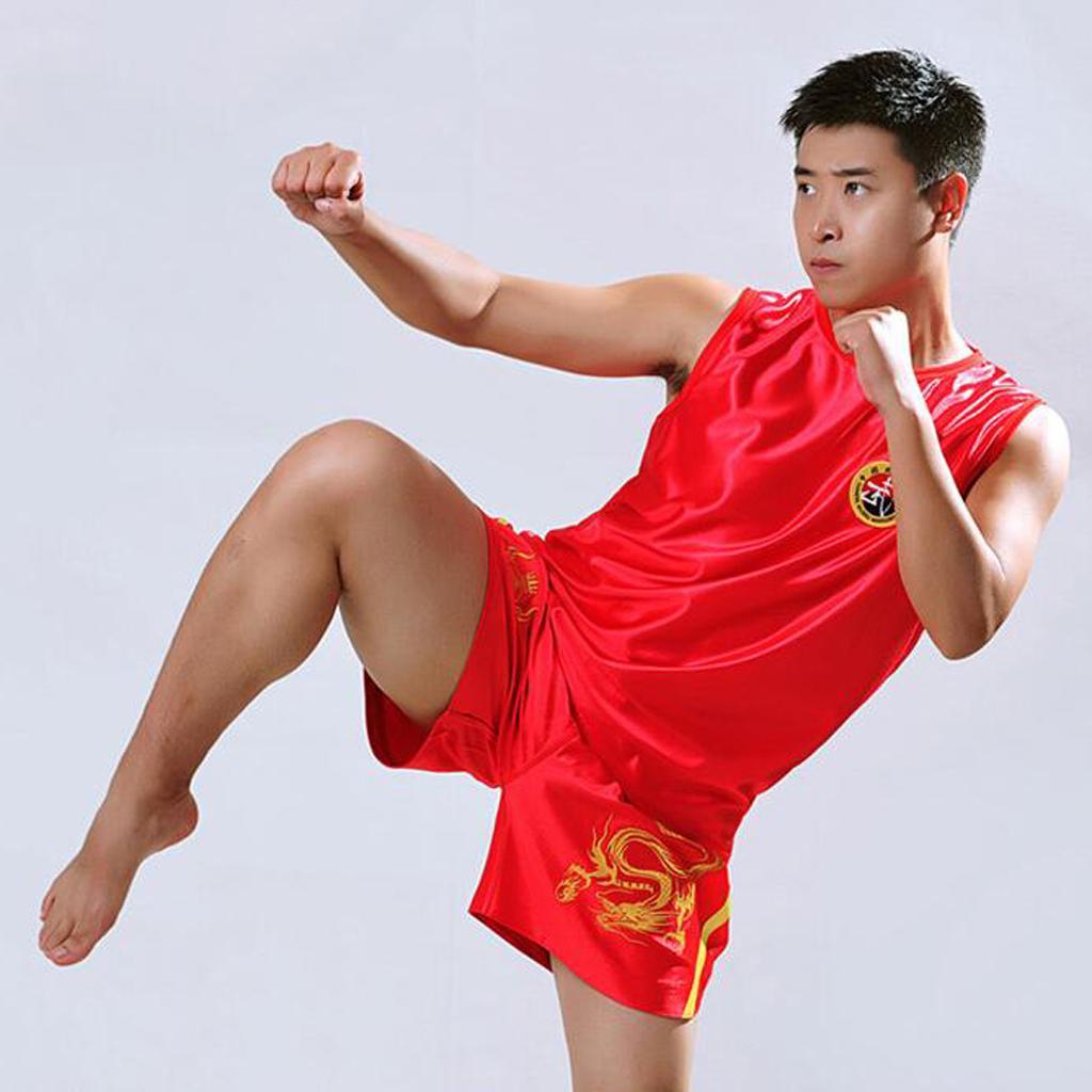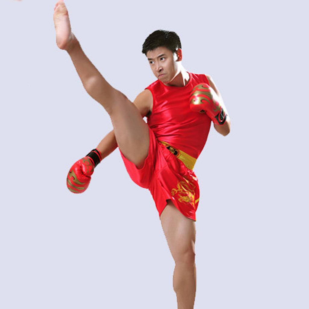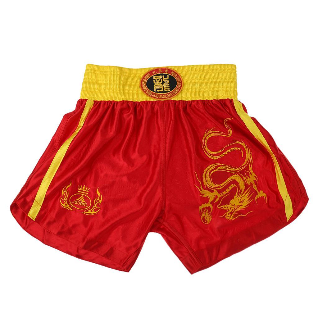 Boxing Martial Arts MMA Clothes Dragon Embroidered Uniform Shorts Red XL