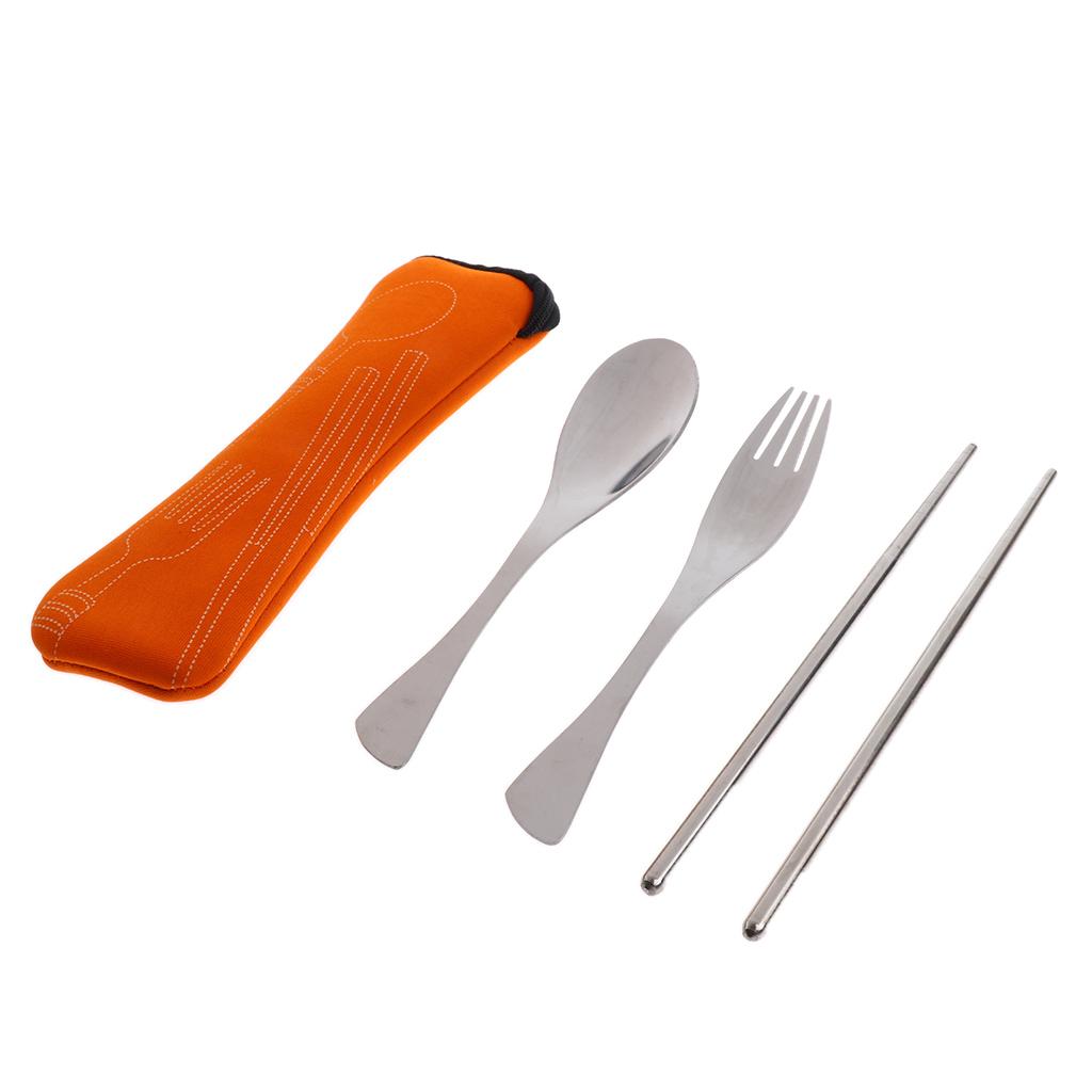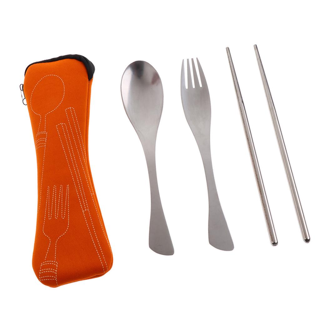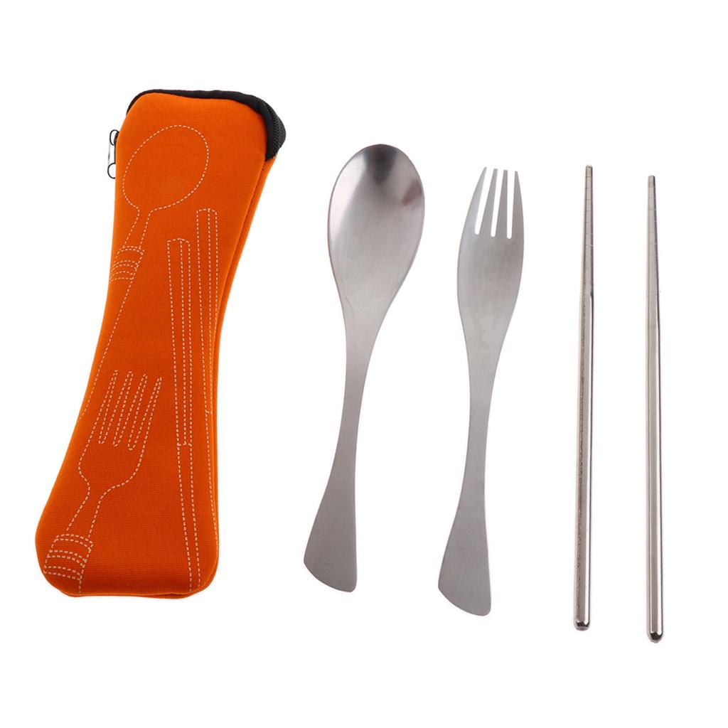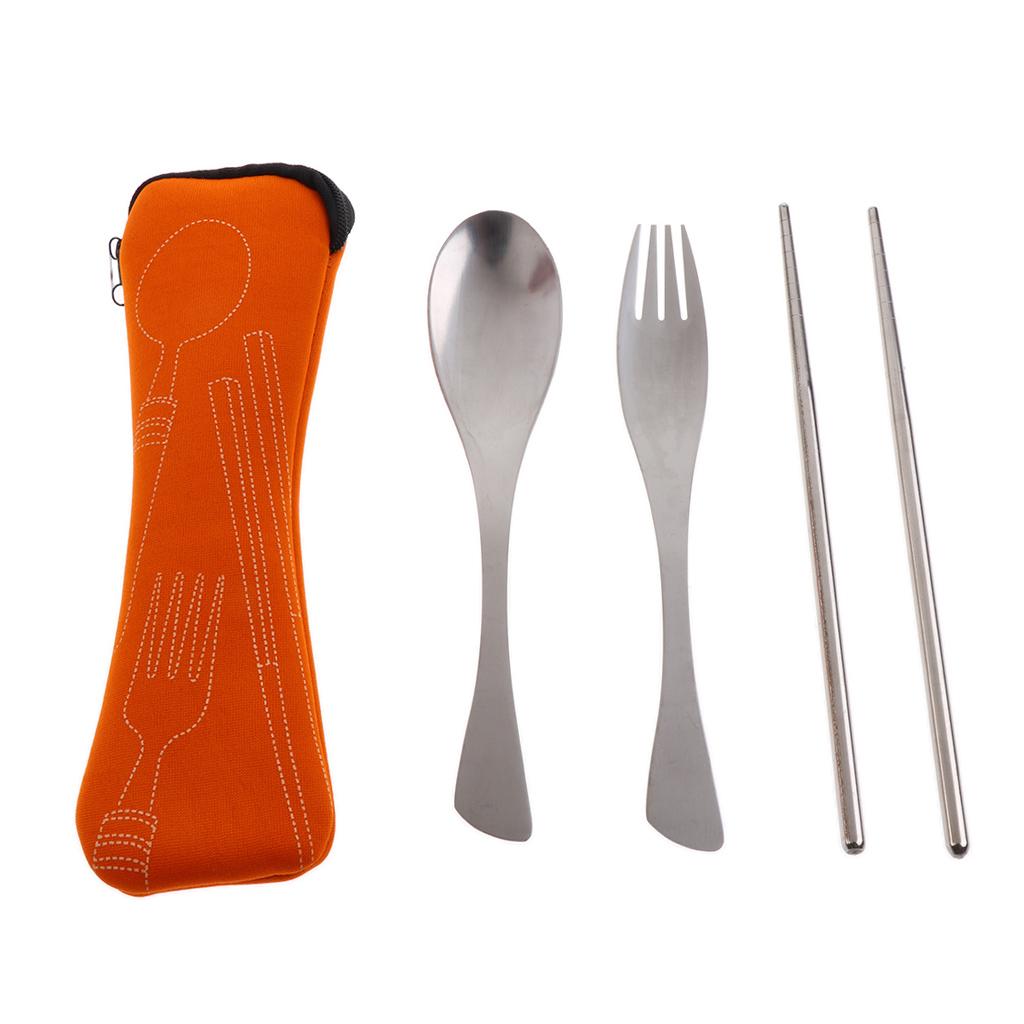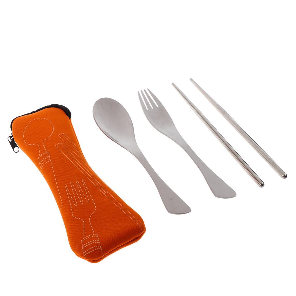 Camping Cutlery Set Portable Tableware Picnic Travel BBQ Orange