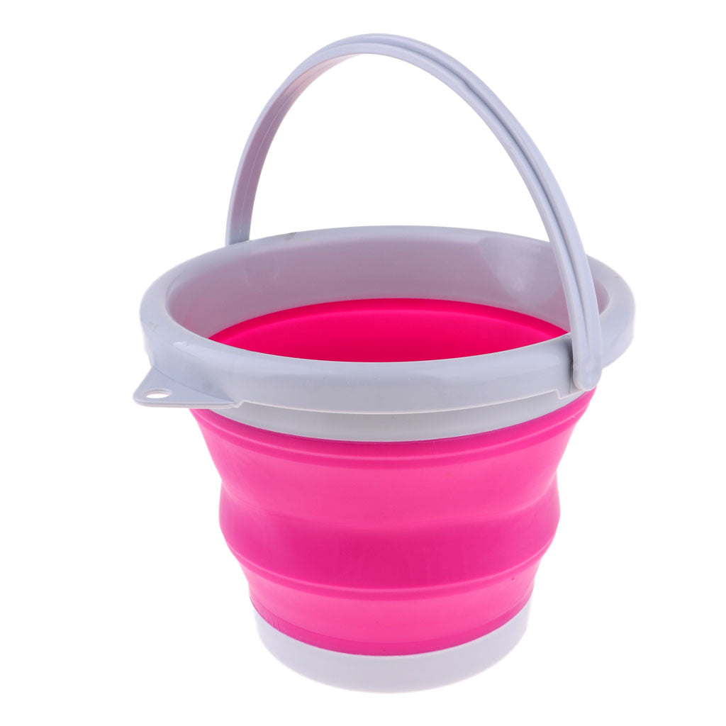 Camping Folding Collapsible Silicone Water Bucket Outdoor Barrel Basin 5L Pink