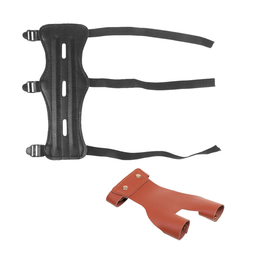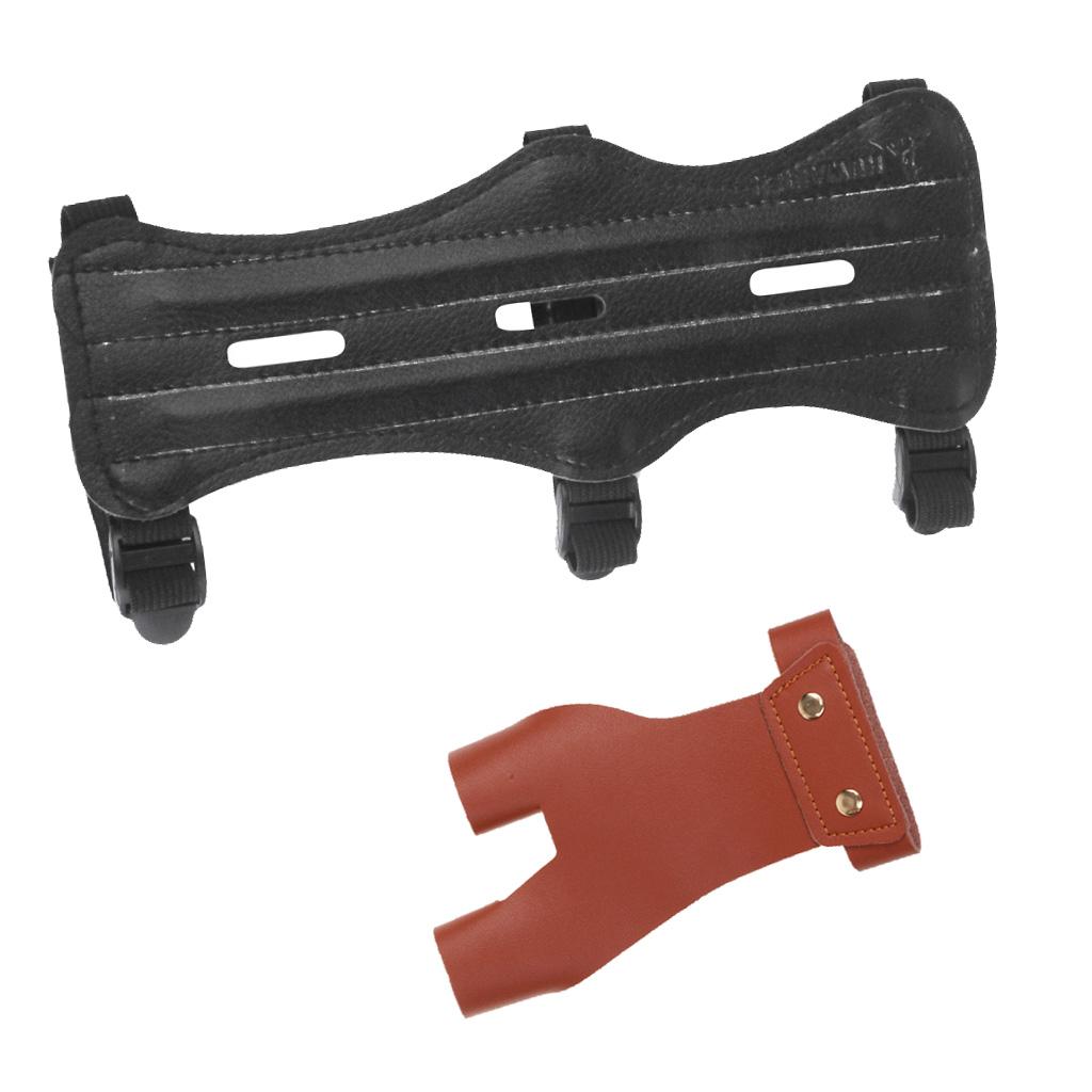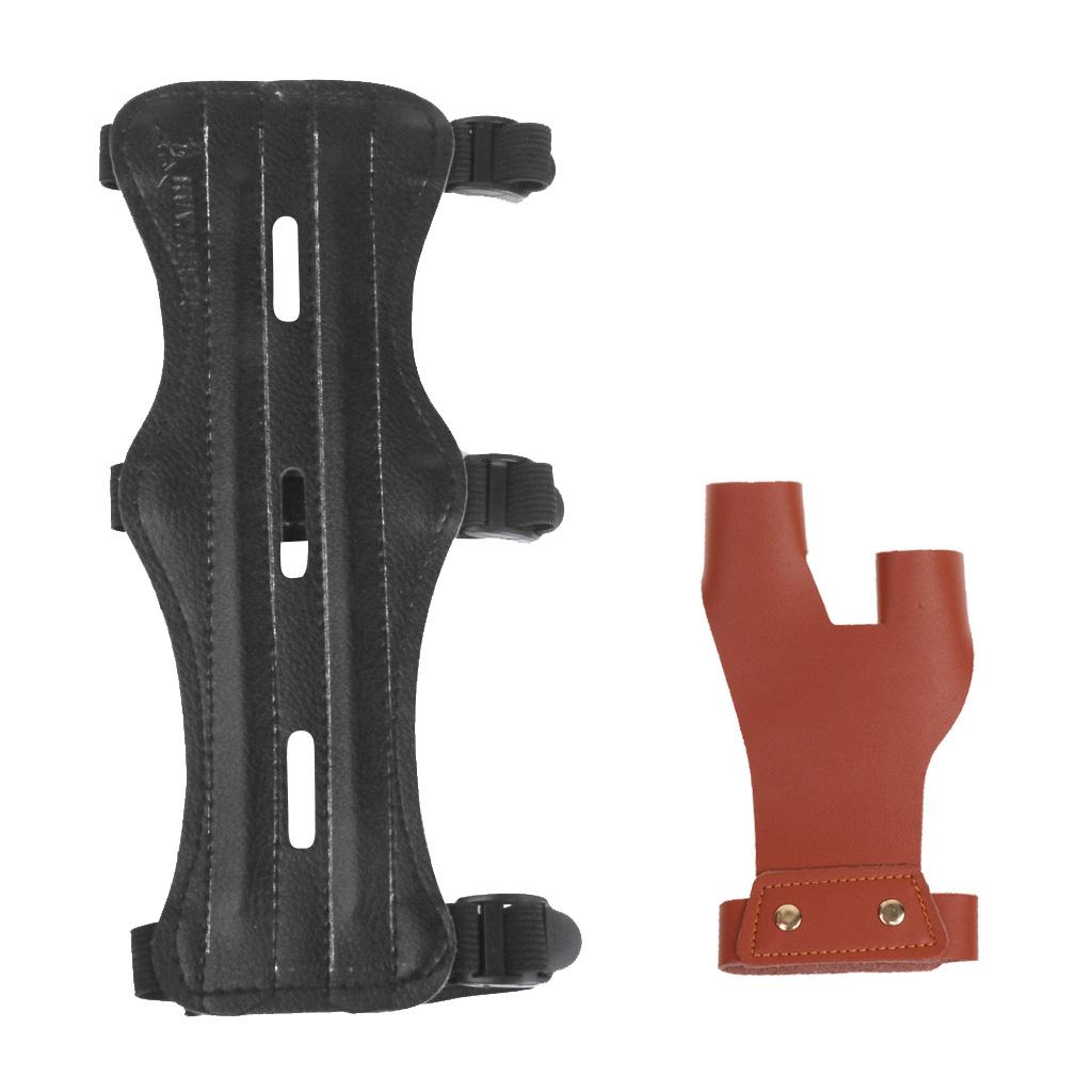 The archery 2 finger glove is suitable for left hand and the archery arm guard with 3 elastic straps, can be use in double-faced
