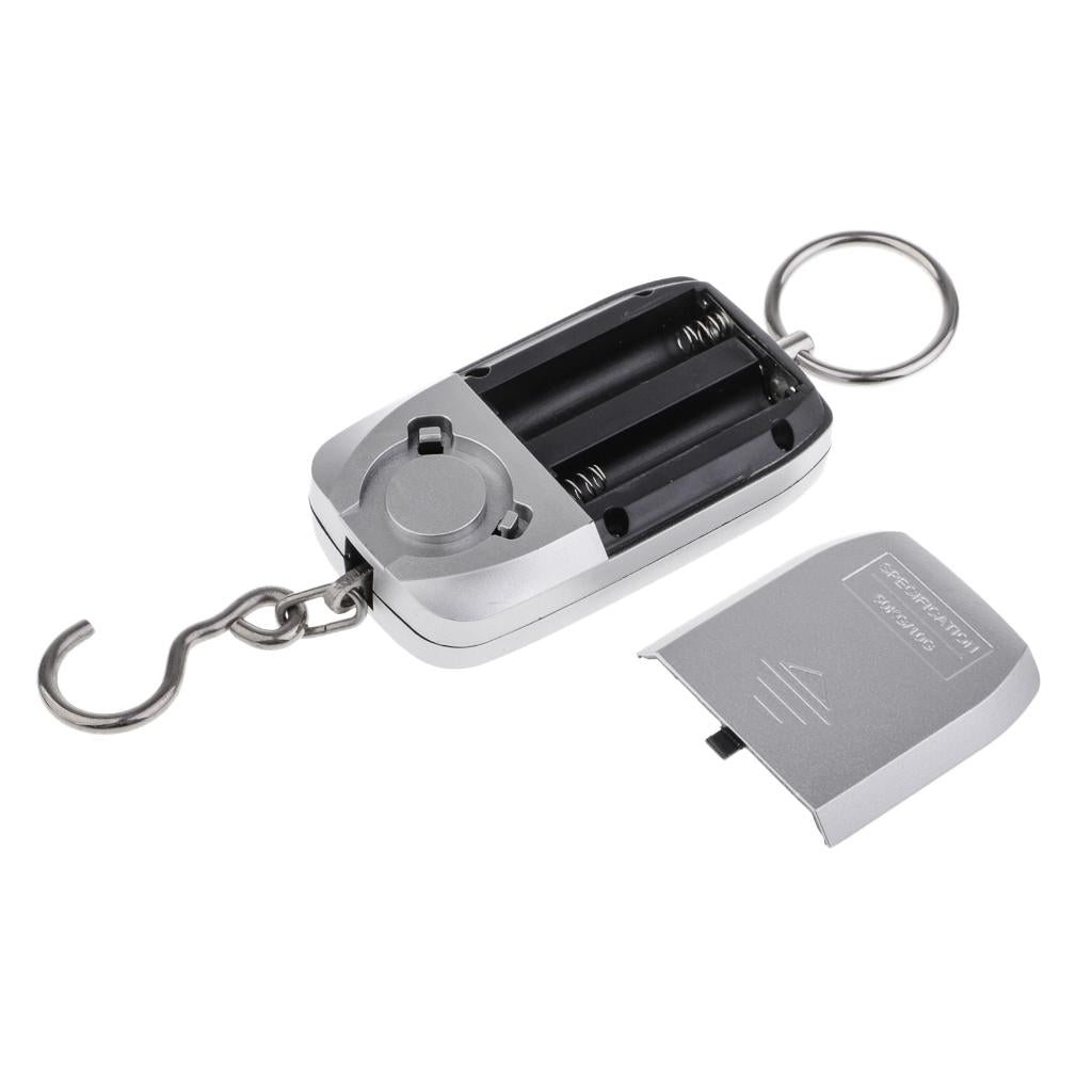 50kg/110lb compact digital hanging scale with a stainless steel hook.