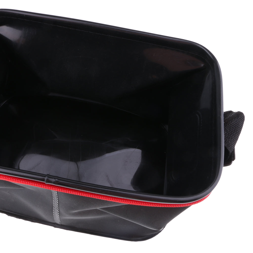 Folding Fishing Bucket with a PVC handle strap for easy transportation.