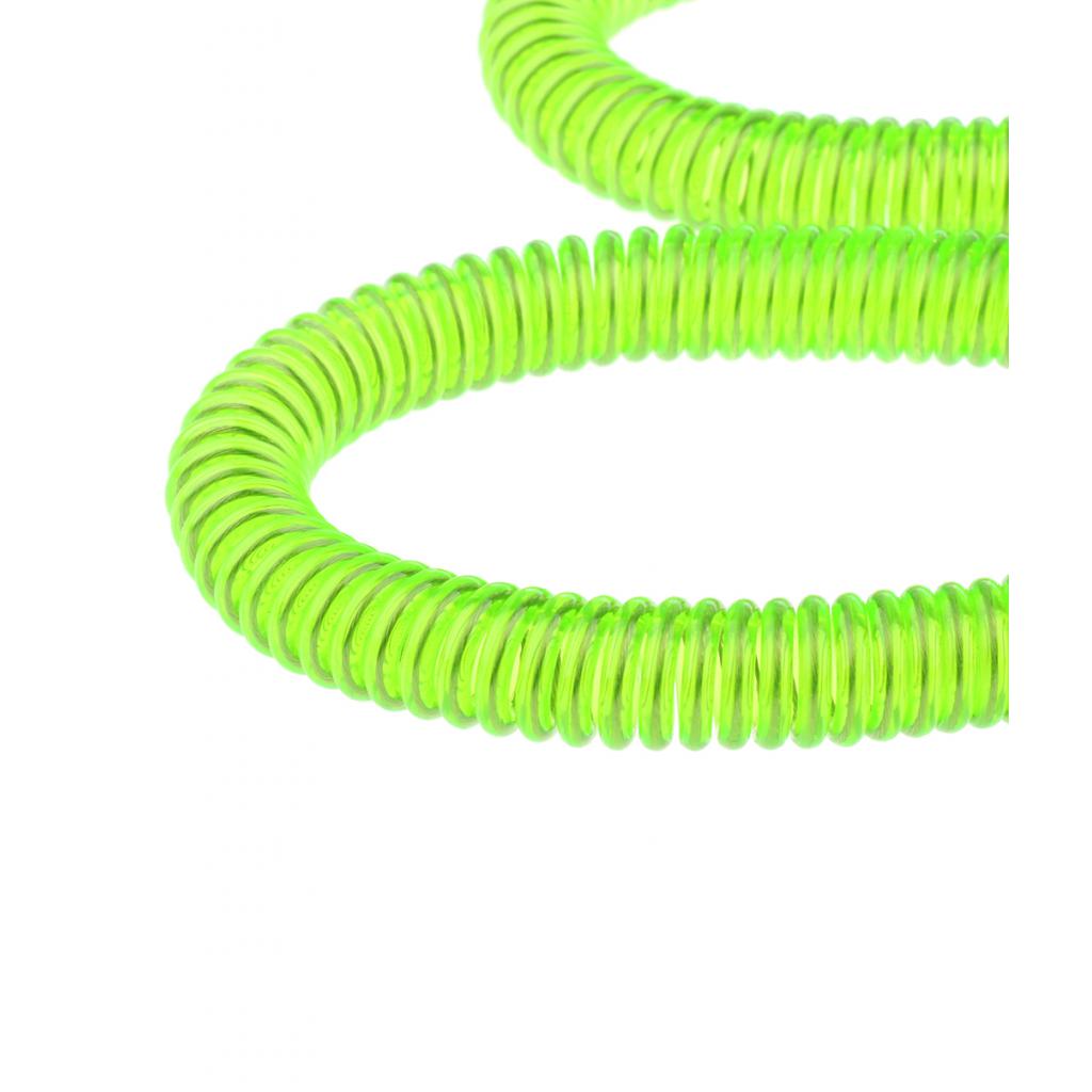 Made of steel wires covered with PVC which can be recovered 95% as it is, when you stretch the Booms Fishing coiled lanyard to its full extent, but the other normal one without steel wire can't be recovered.