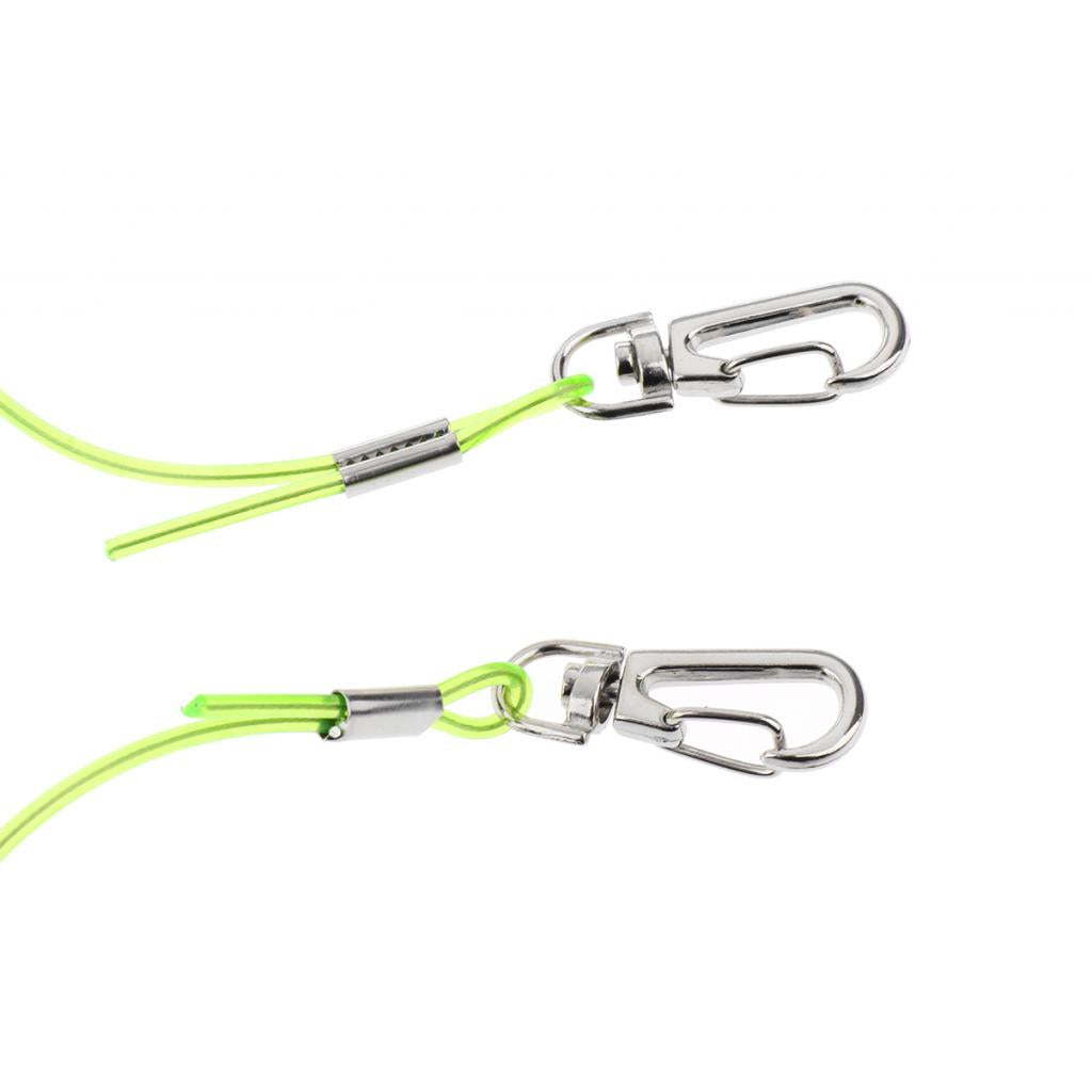 There is a lobster clip on each end strong enough to withstand heavy duty, so that the ends are not easy to release by accident.