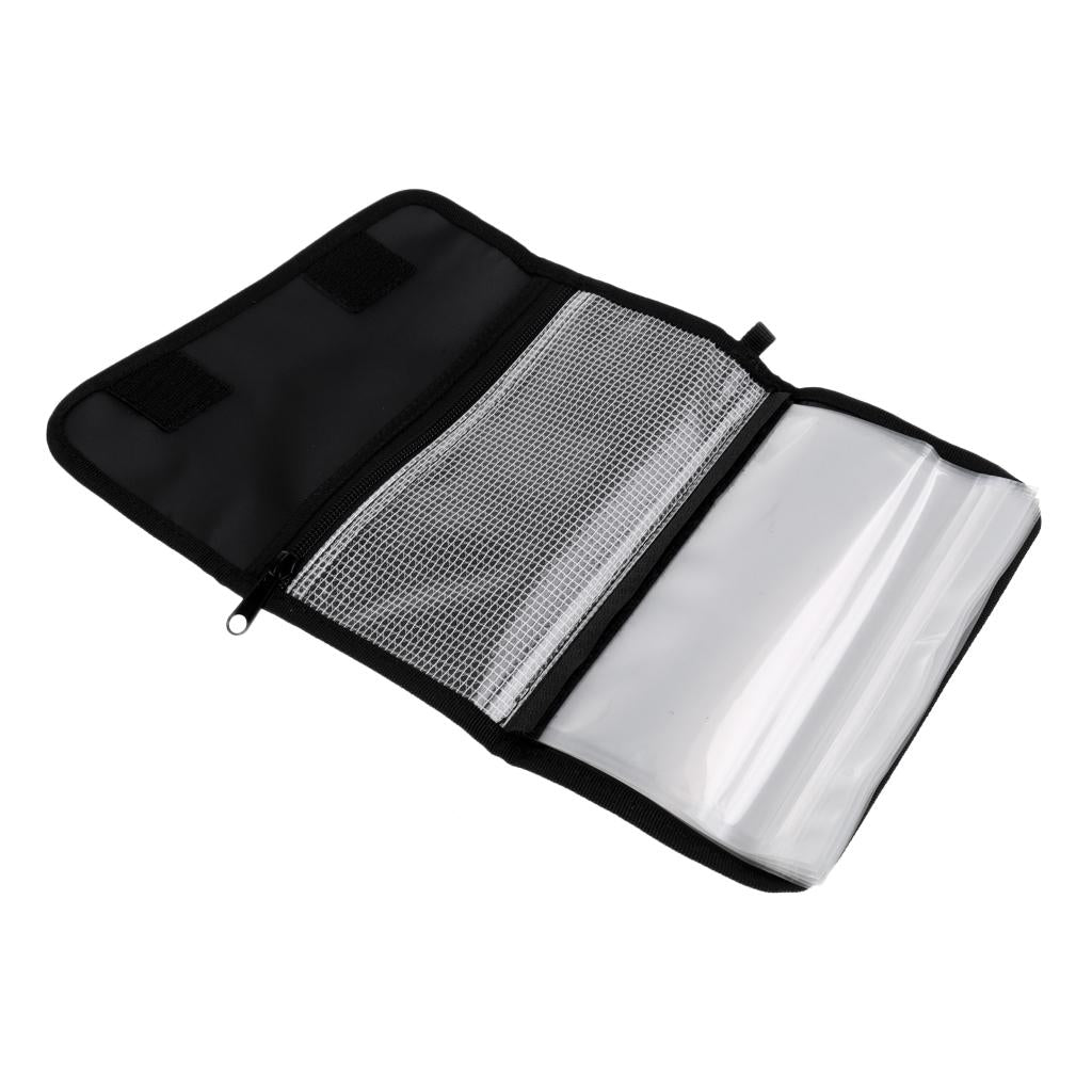 Equipped with 6 transparent PE Bag and 2 zipper bag, to separate and storage different lures.