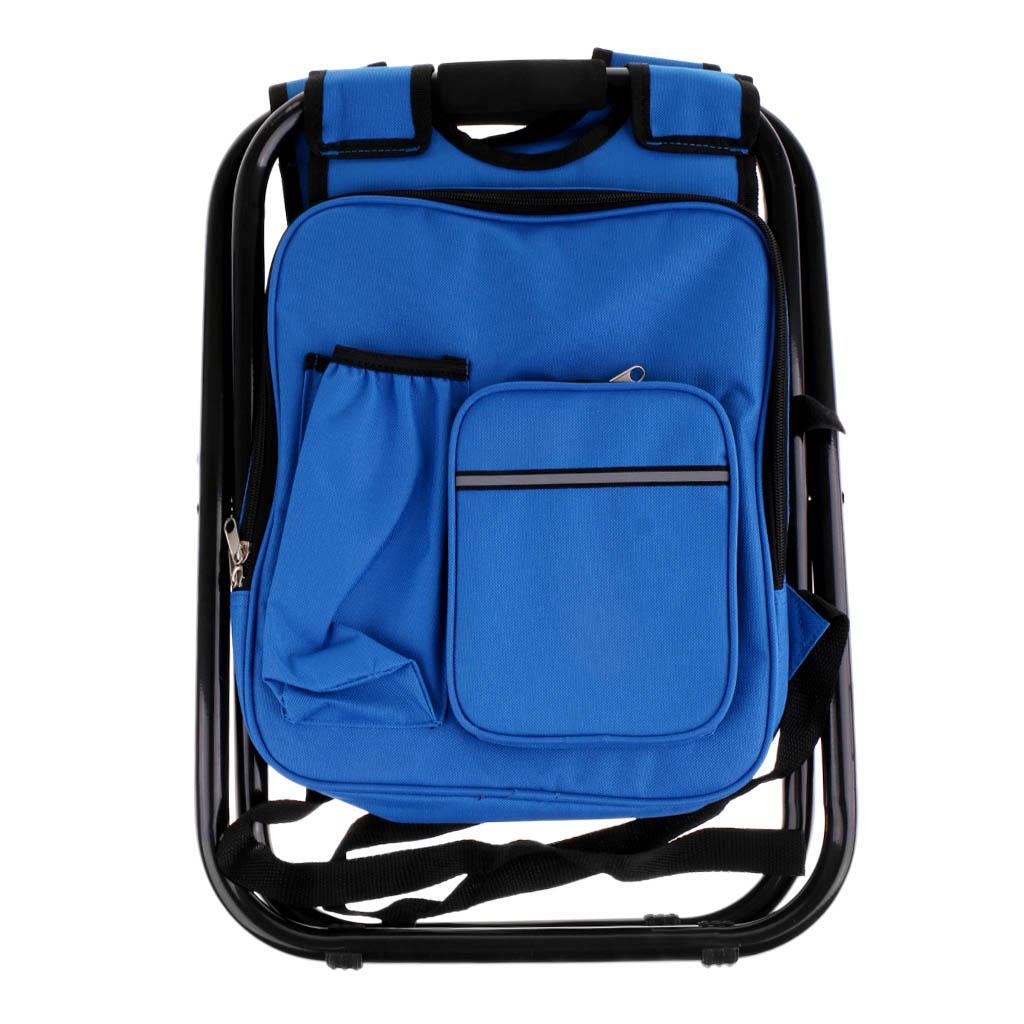 Foldable Backpack Chair Portable Camping Stool with Cooler Bag blue