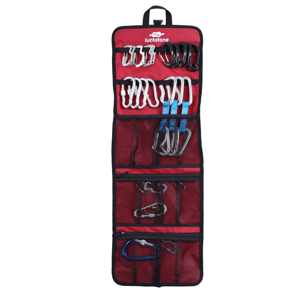 Folding Rock Climbing Caving Quickdraw Sling Carabiner Collection Bag Red