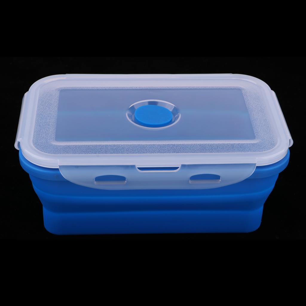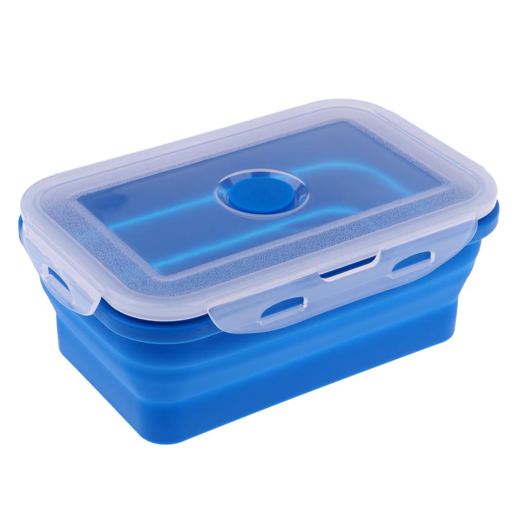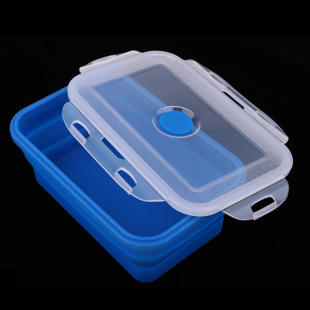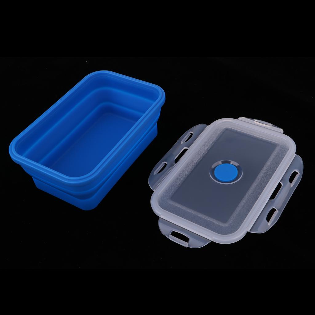 Folding Silicone Lunch Box Bowl Bento Collapsible Food Storage 1200ML Blue