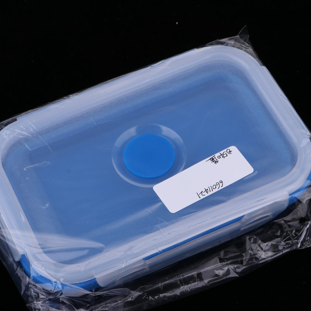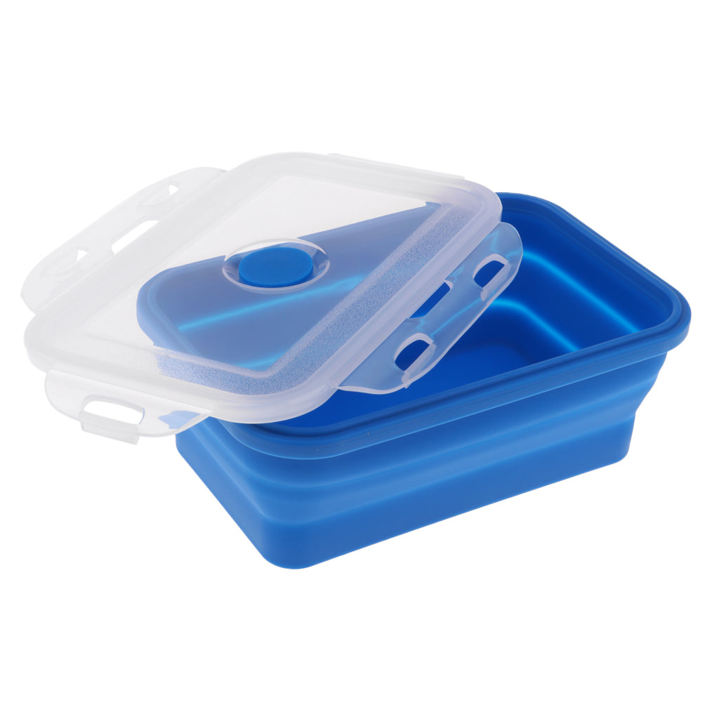 Folding Silicone Lunch Box Bowl Bento Collapsible Food Storage 540ML Blue