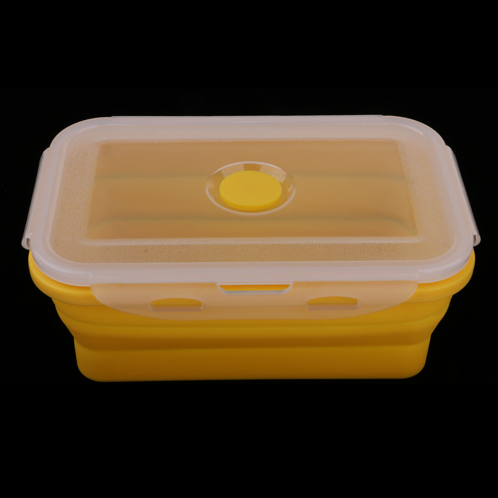 Folding Silicone Lunch Box Bowl Bento Collapsible Food Storage 540ML Yellow