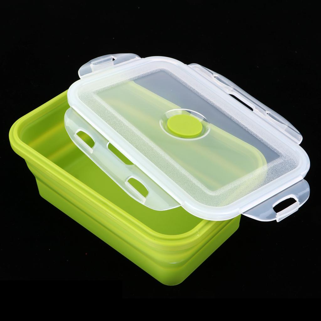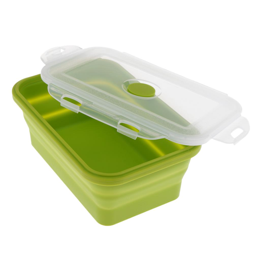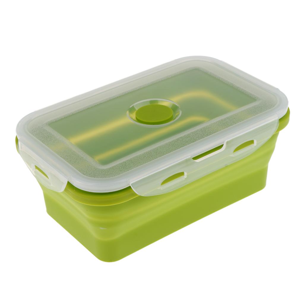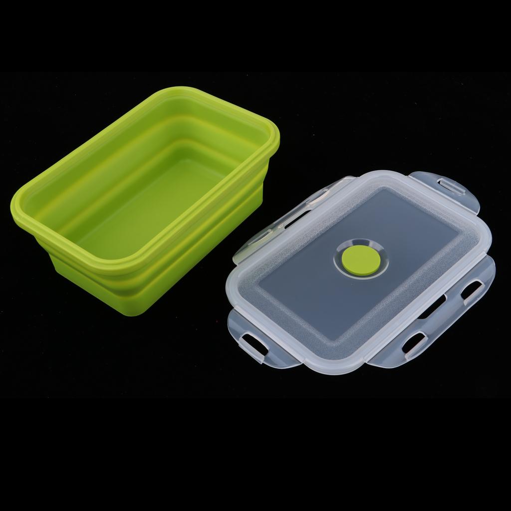 Folding Silicone Lunch Box Bowl Bento Collapsible Food Storage 800ML Green