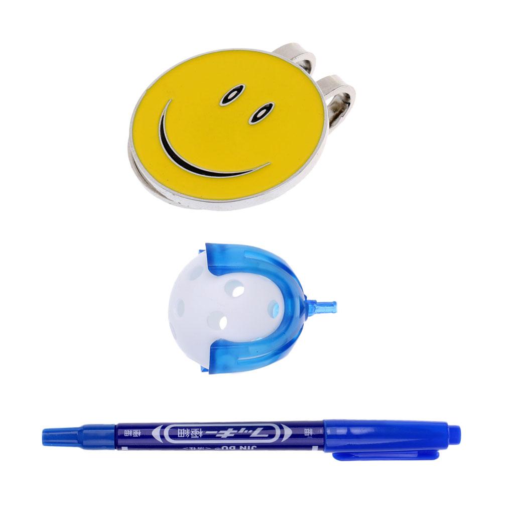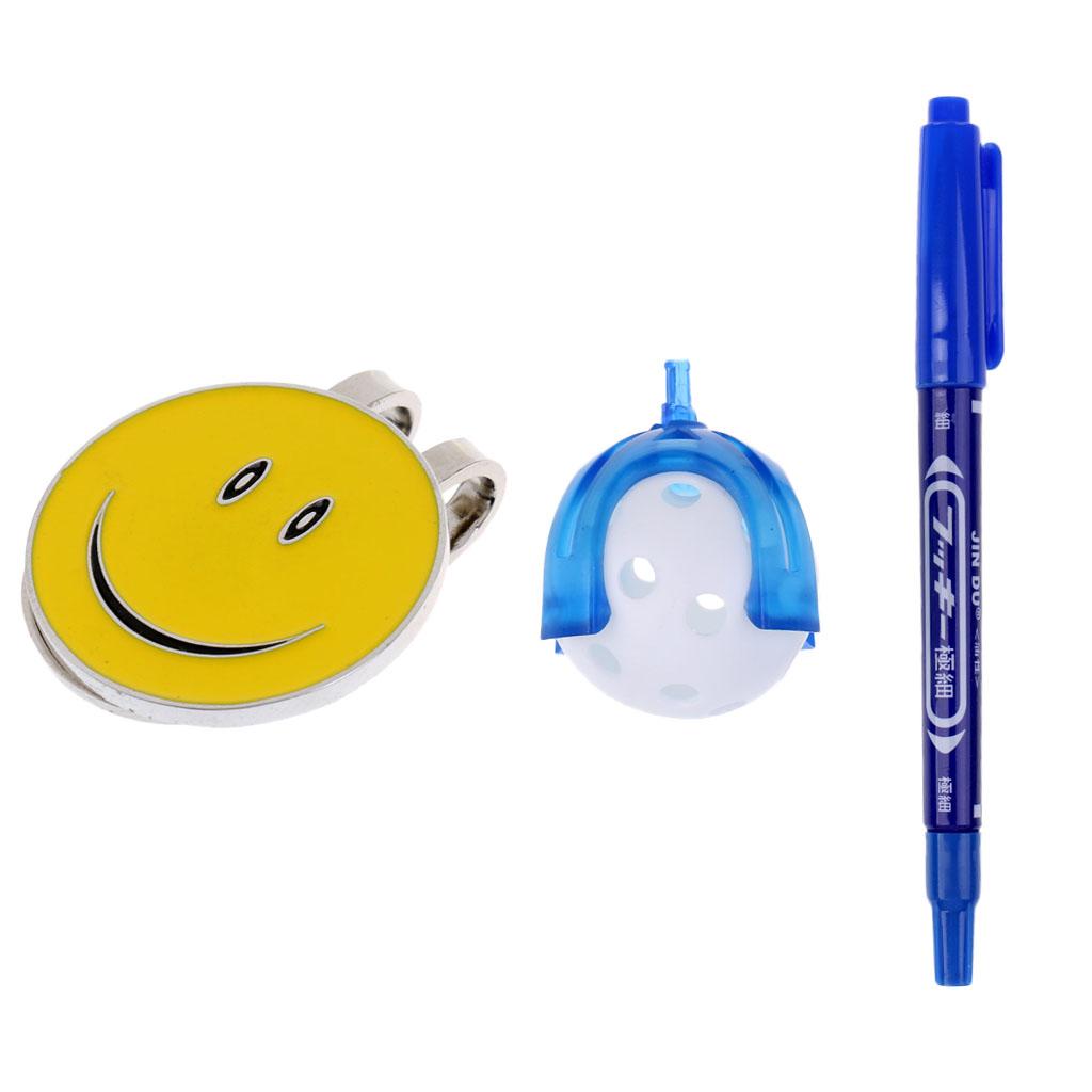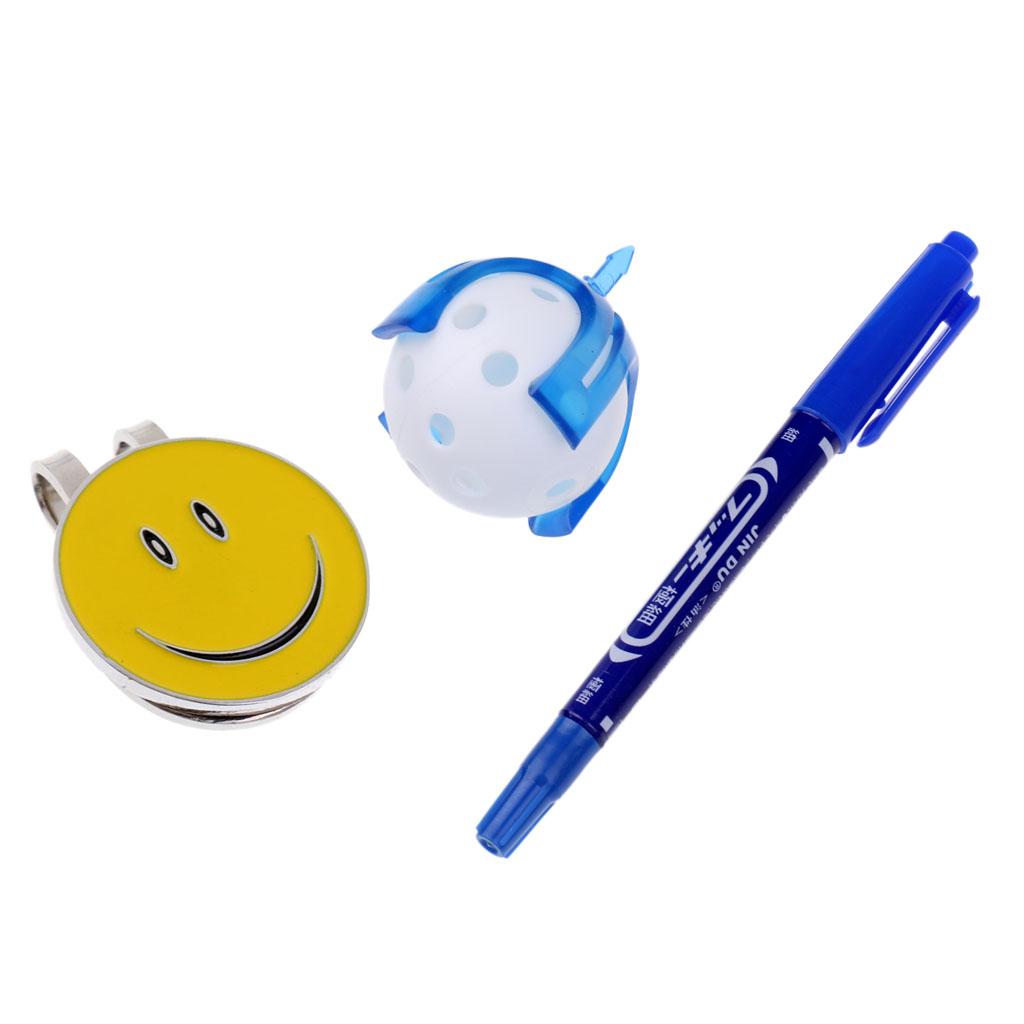 1 Piece smiling face golf ball marker plus 1 piece golf ball liner with a pen and a ball