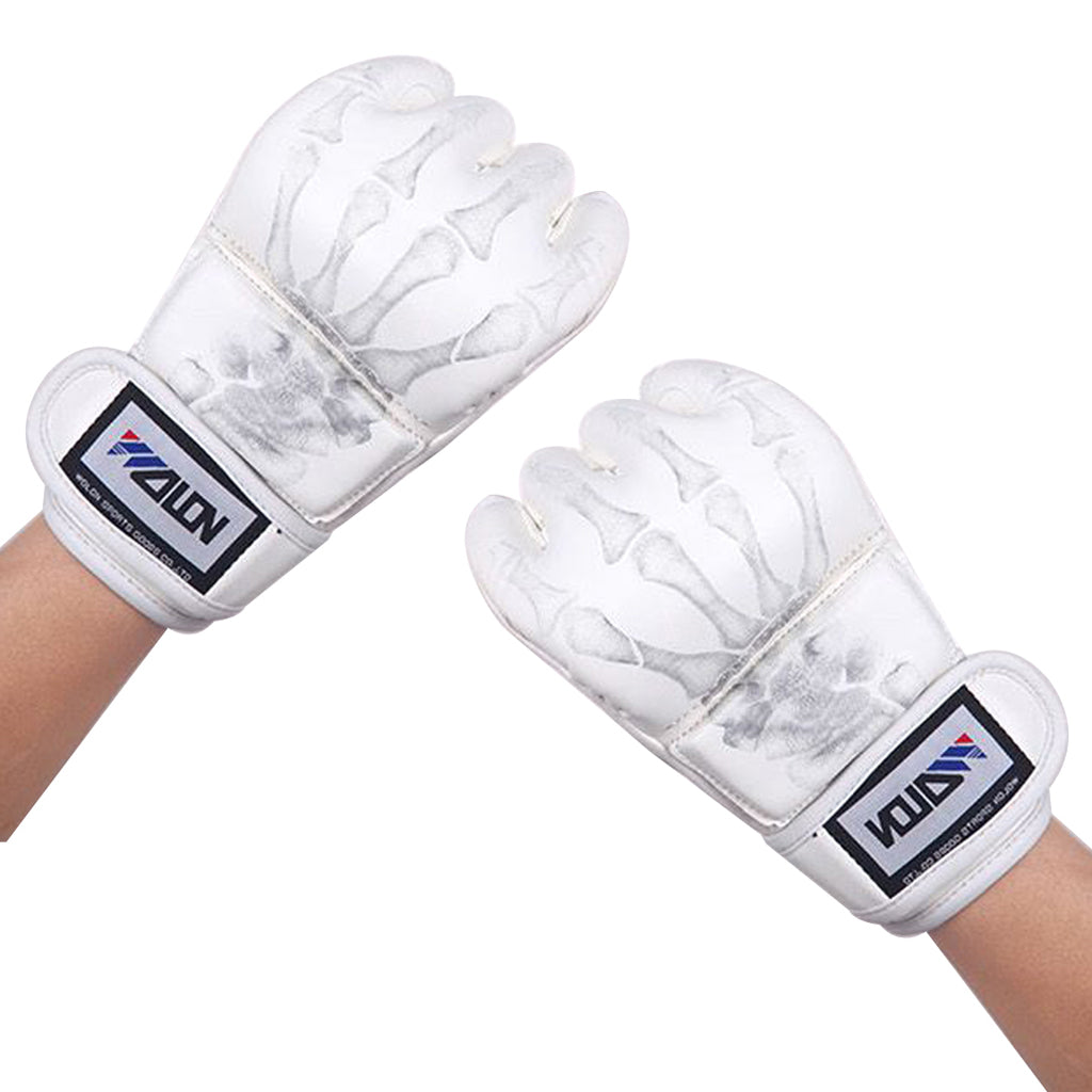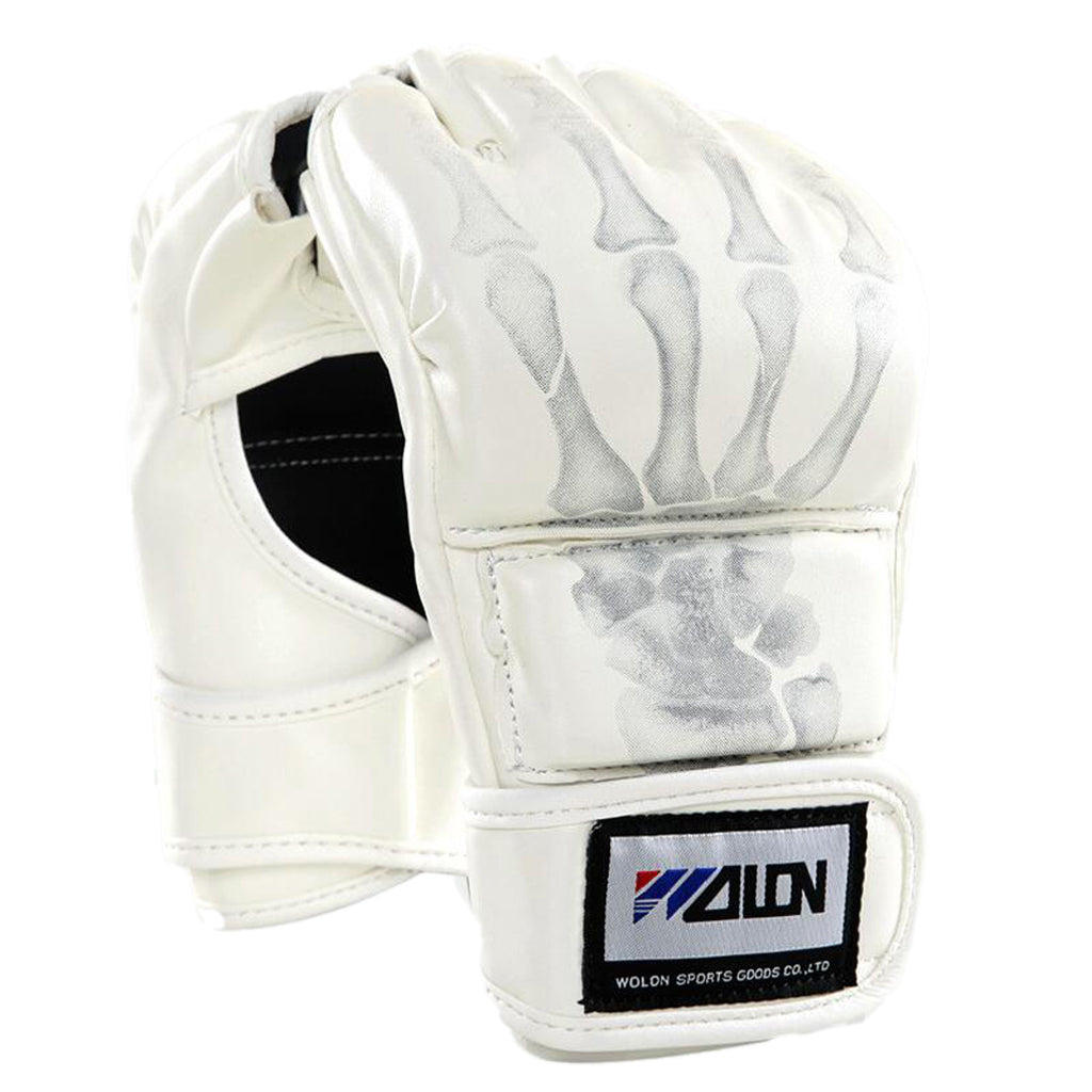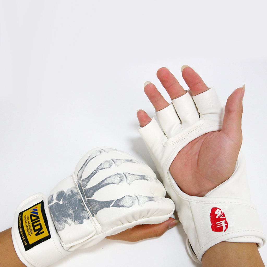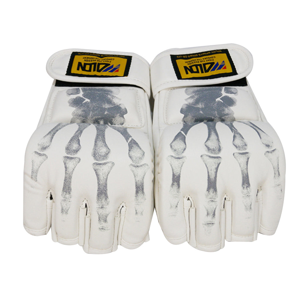 Half Finger Boxing Punching Fighting Sandbag Training Gloves - White Skull