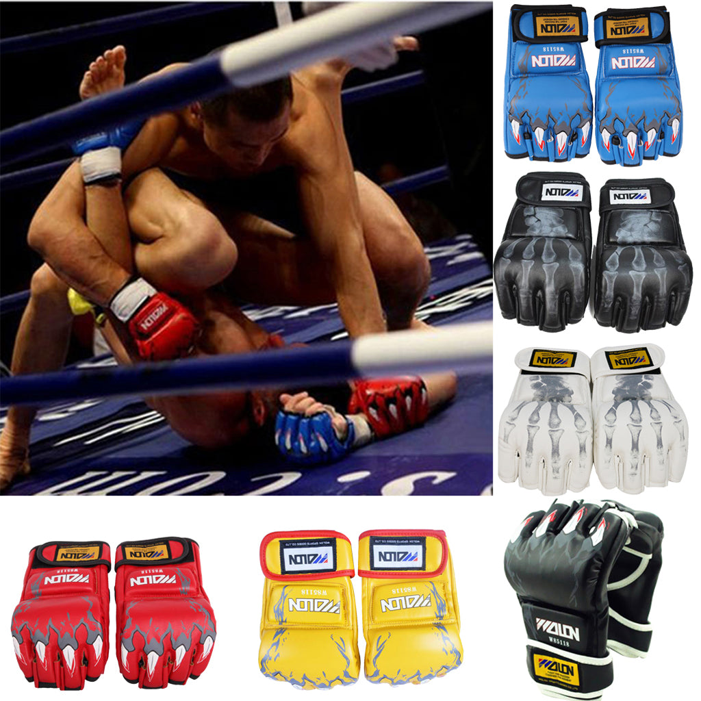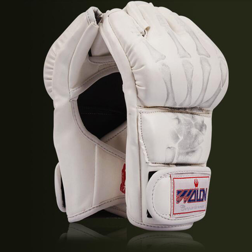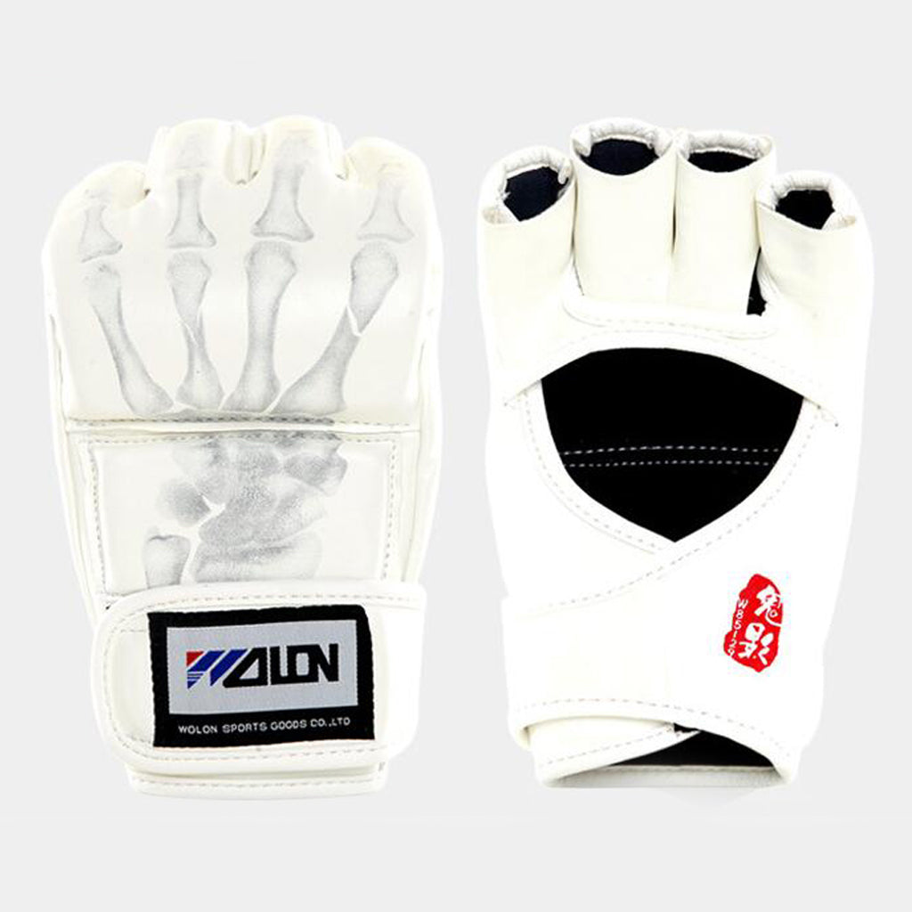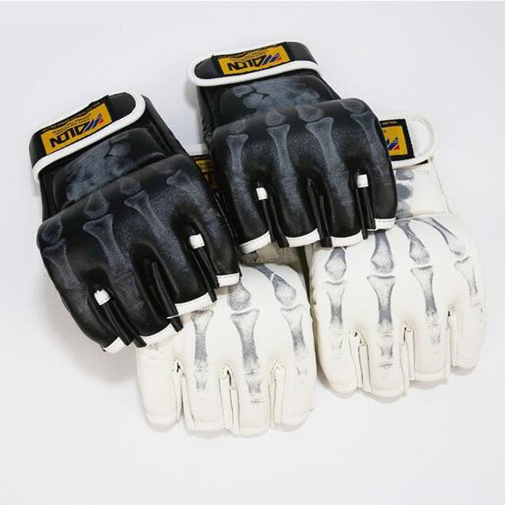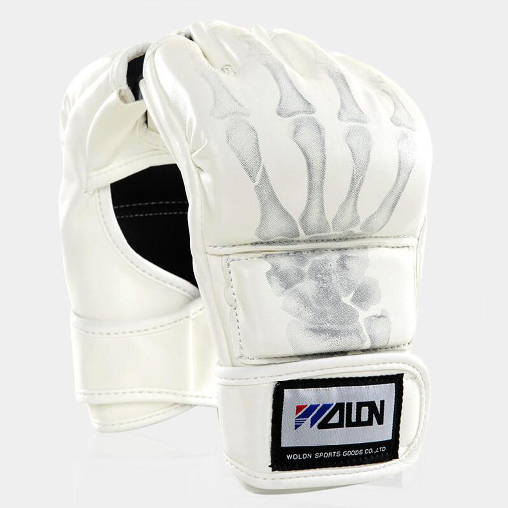 Half Finger Boxing Punching Fighting Sandbag Training Gloves - White Skull