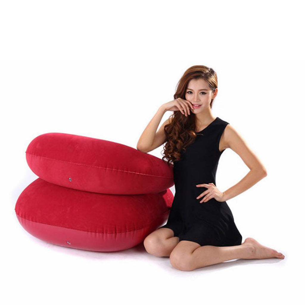 Inflating the wedge by mouth or pump. When you don't need it, you can get air out and fold it, lightweight and portable, save space