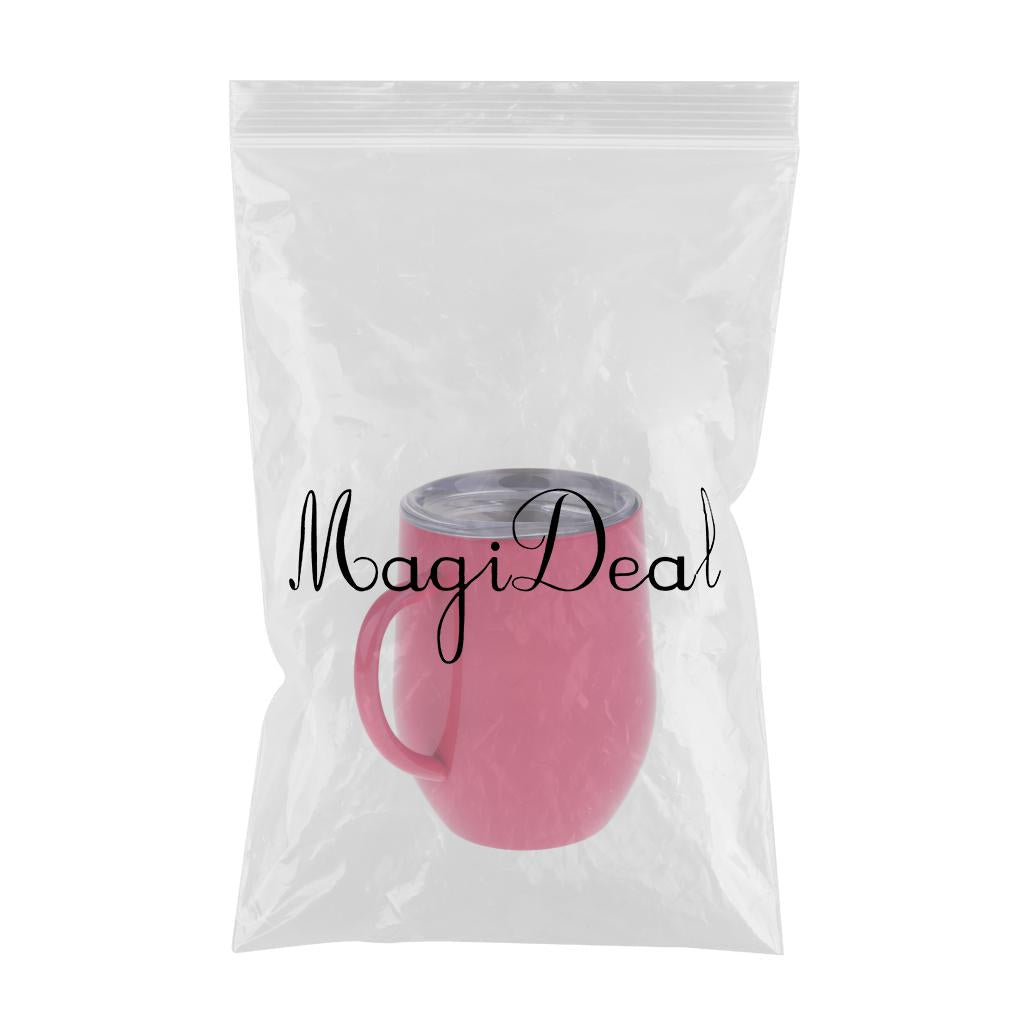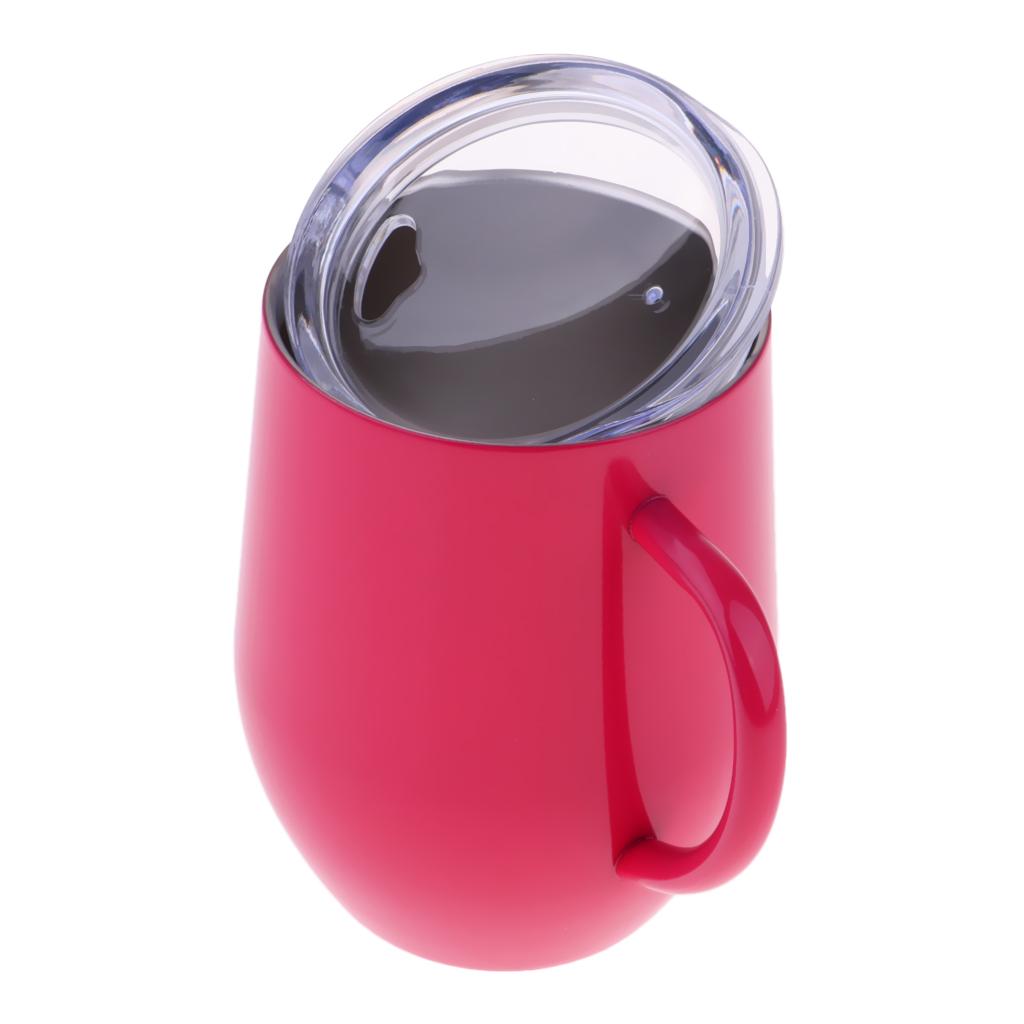 Wine tumbler with handle and lid is made of 304 stainless steel inside, unbreakable, easy to clean, cute and lightweight