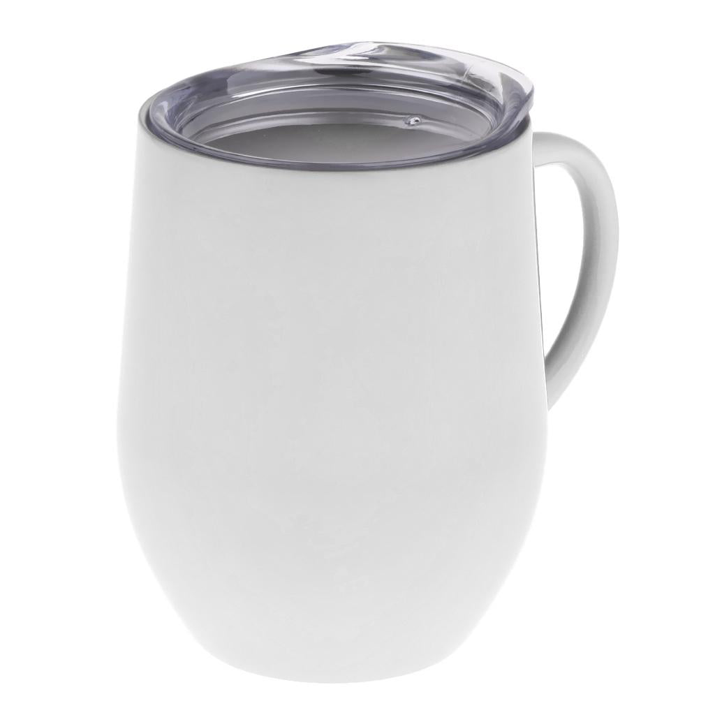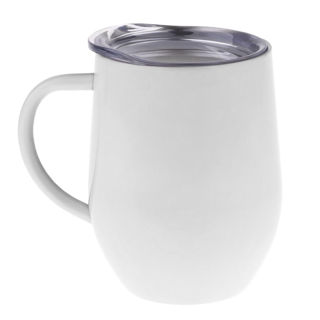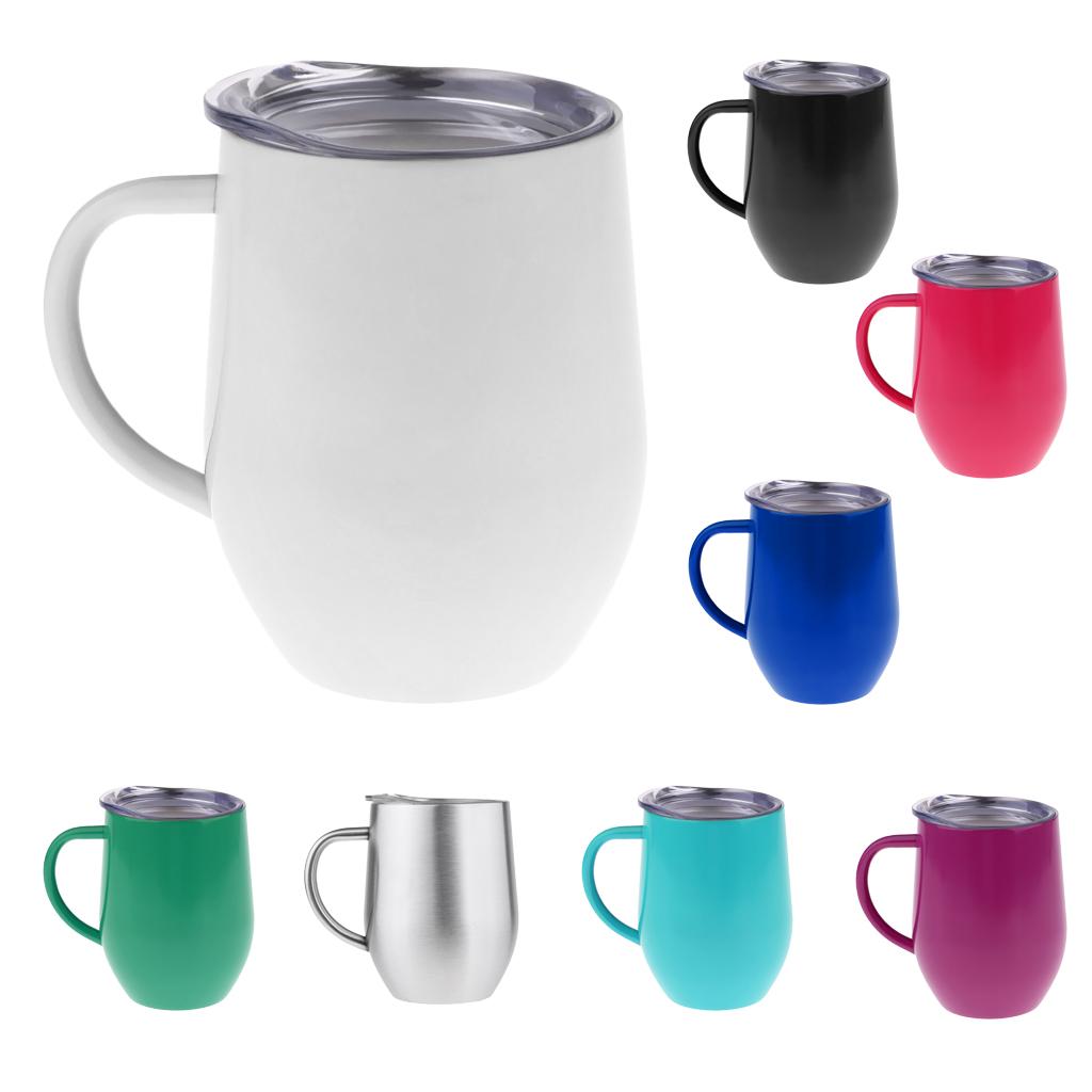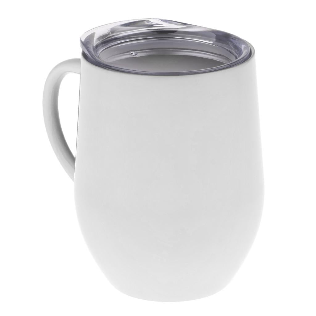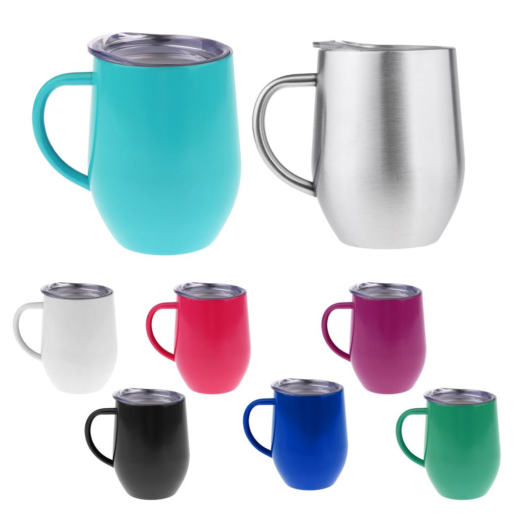 Wine tumbler with handle and lid is made of 304 stainless steel inside, unbreakable, easy to clean, cute and lightweight