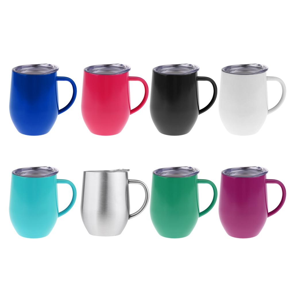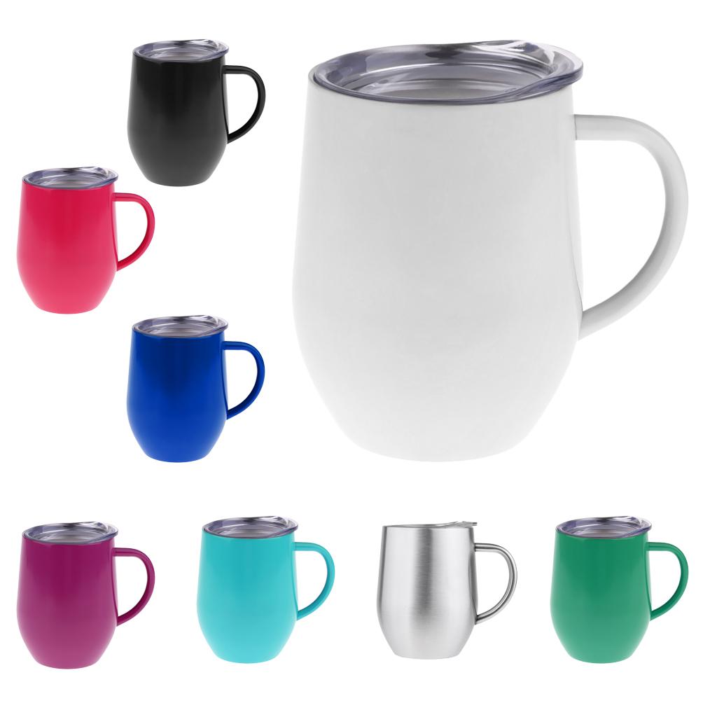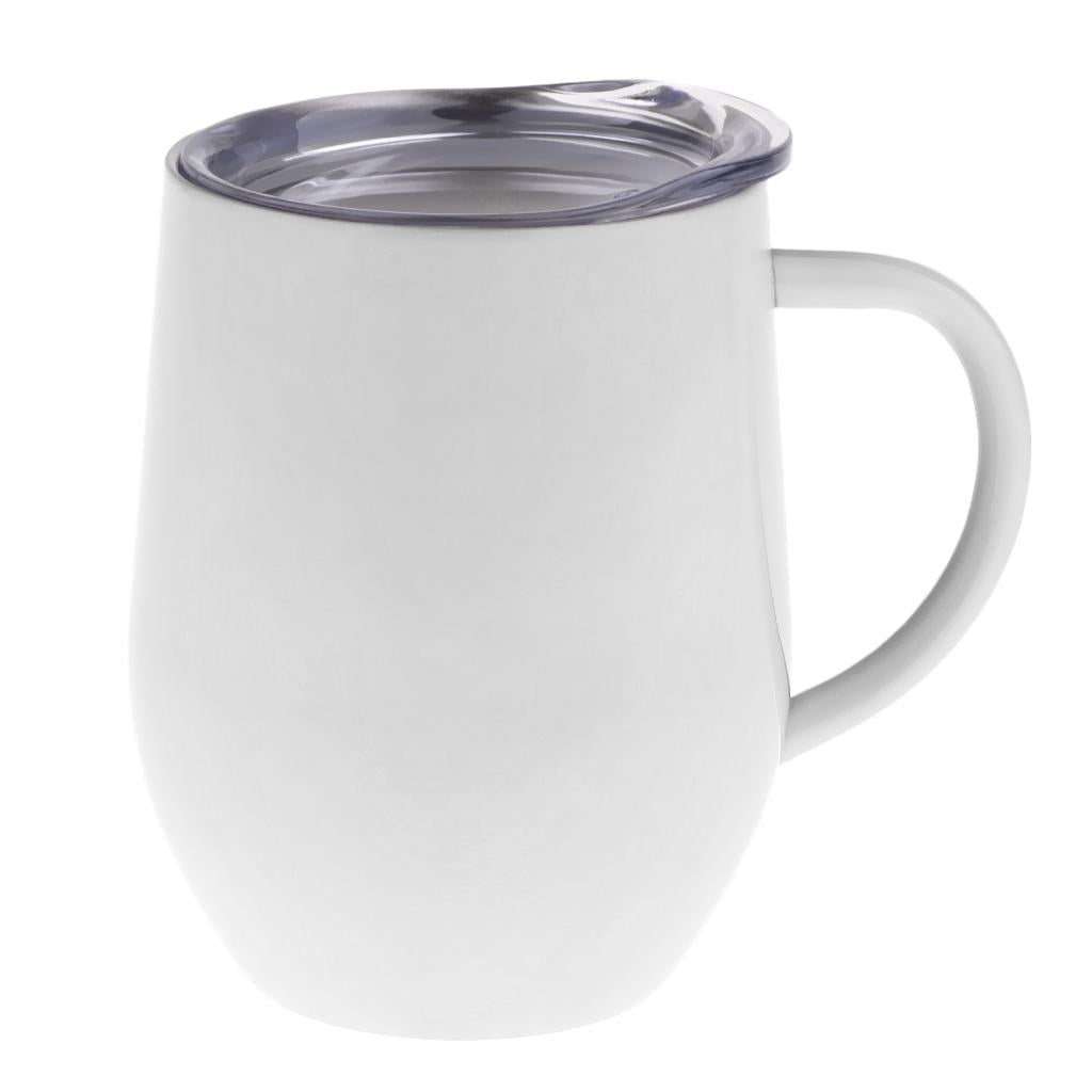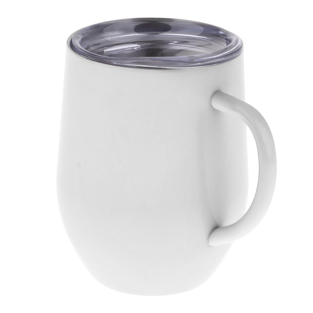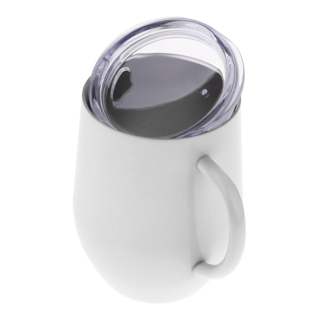Wine tumbler with handle and lid is made of 304 stainless steel inside, unbreakable, easy to clean, cute and lightweight