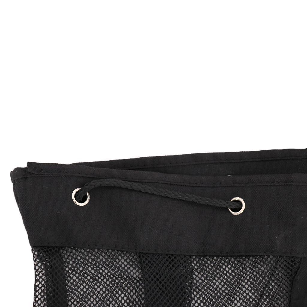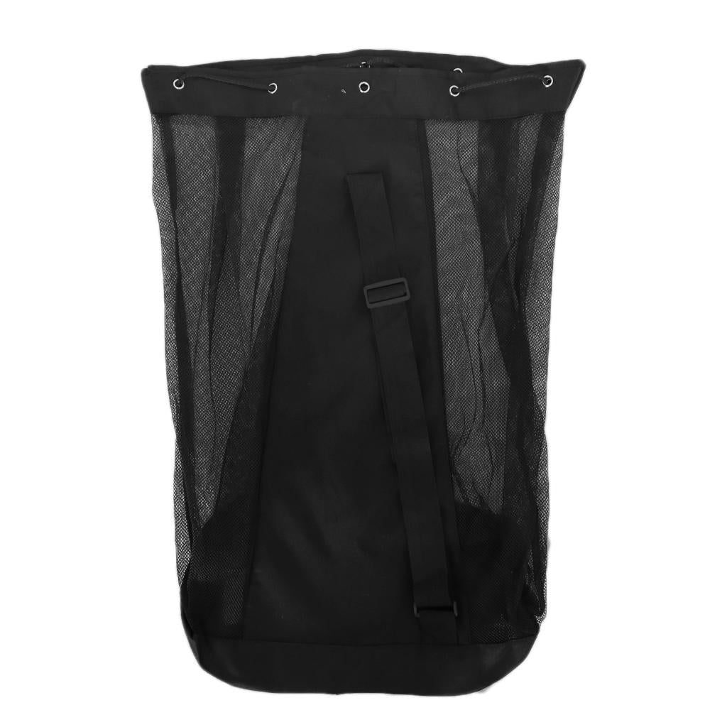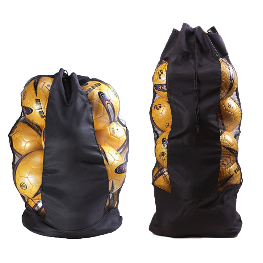 Heavy duty mesh equipment bag with adjustable shoulder strap for easy carrying.