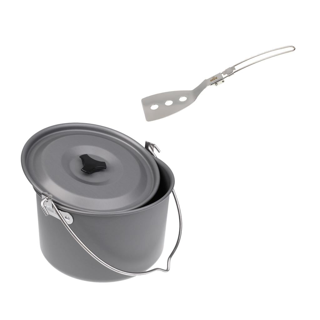 Portable large camping hanging pot with folding spatula