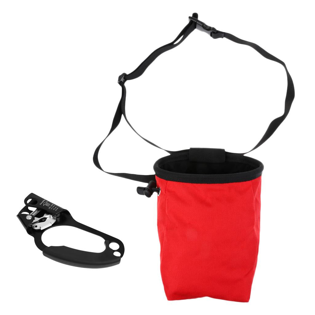 The chalk bag with tight drawstring closure, keeps chalk from falling out