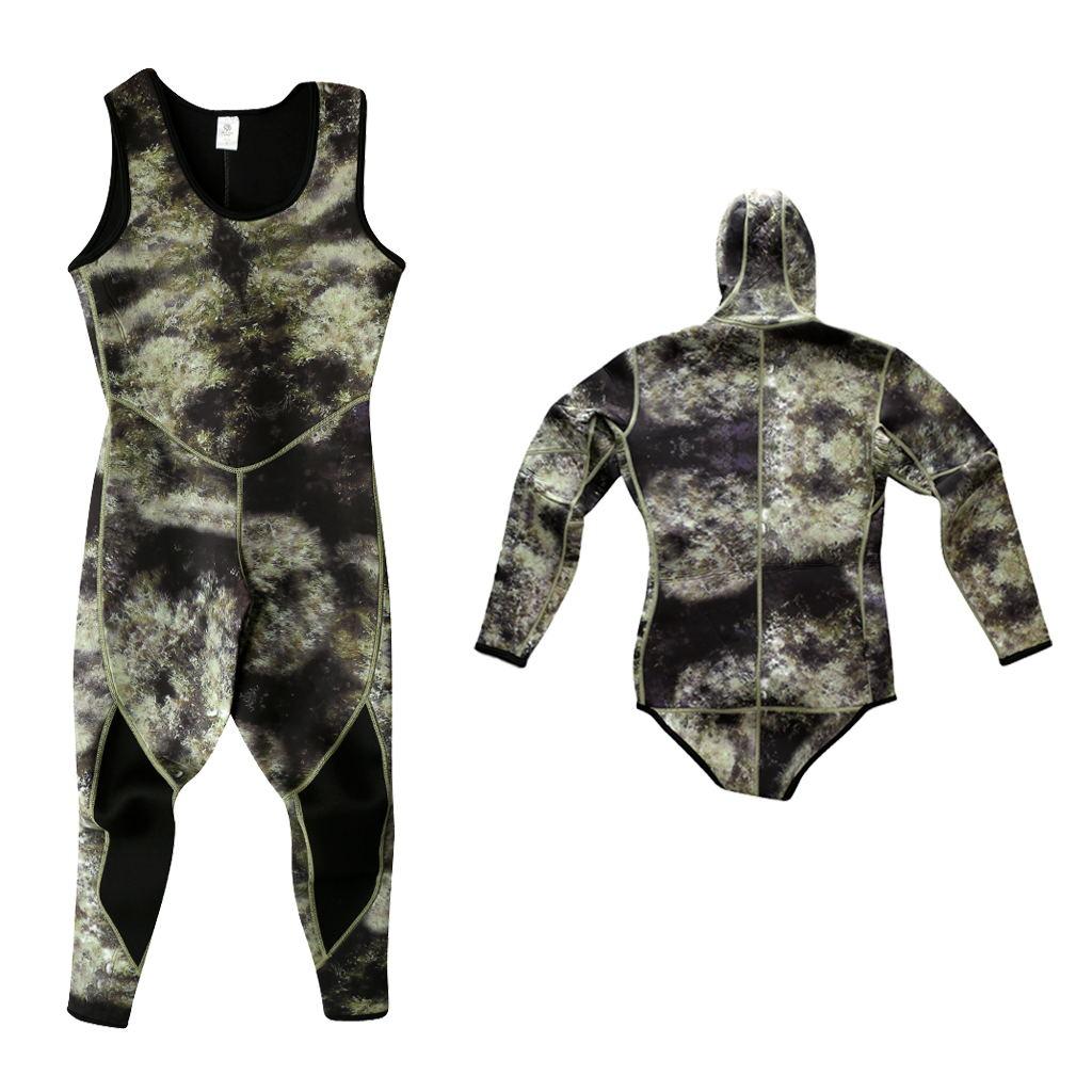 Men 3mm Neoprene Full Body Wetsuit Two-piece Suit for Diving Snorkeling 2XL
