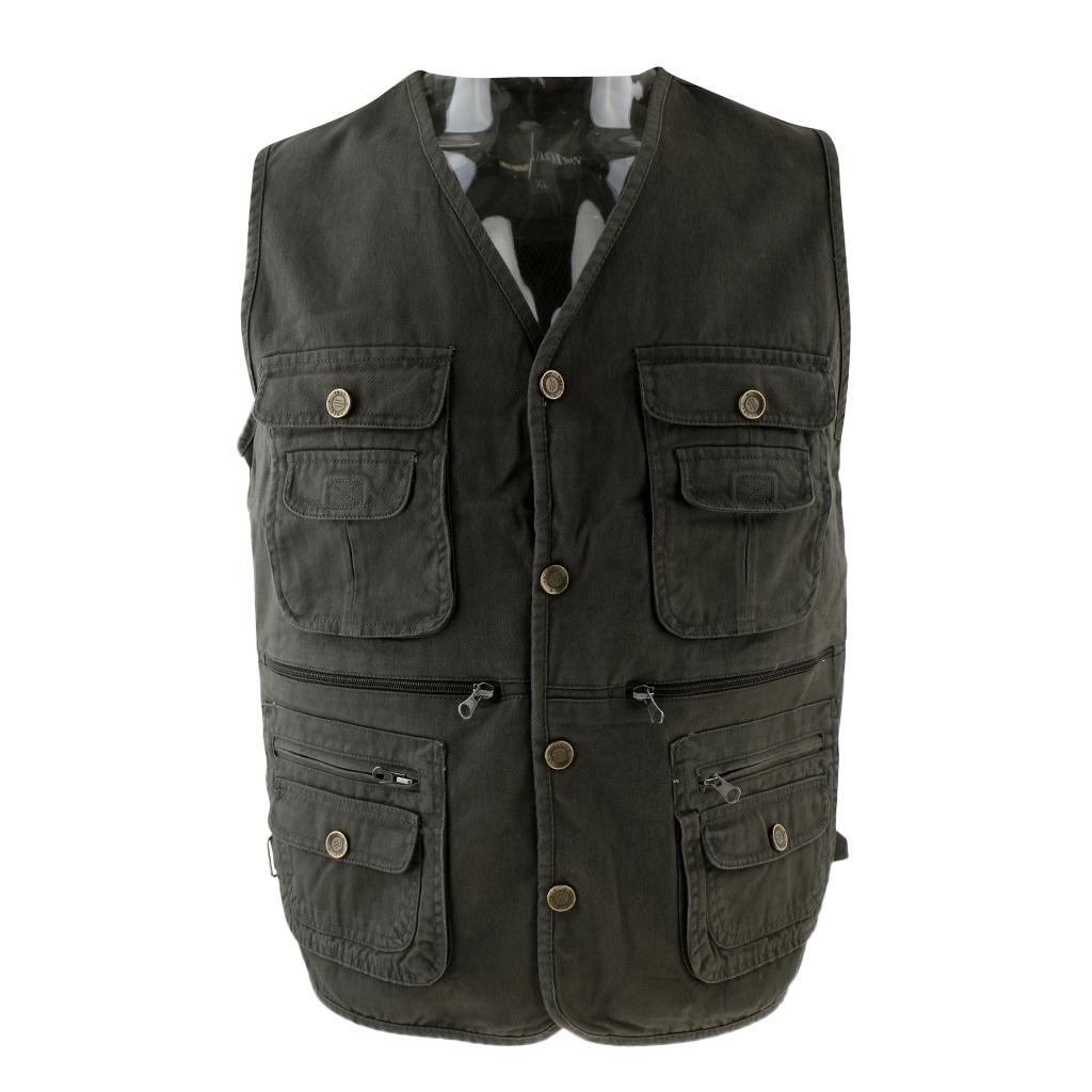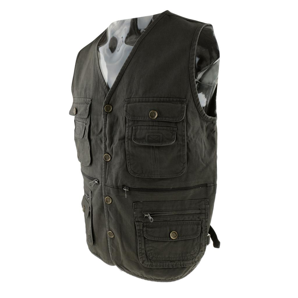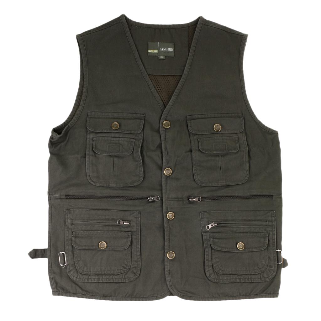 Men Multi Pockets Fishing Hunting Mesh Vest Outdoor Jacket XXXL Army Green