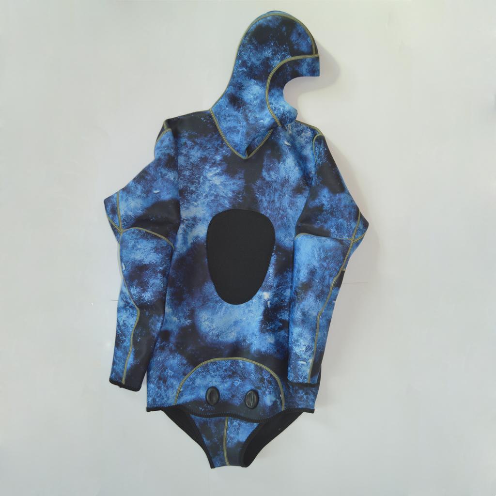 Features a long john style wetsuit and a matching hooded jacket with chest loading pad and knee protection