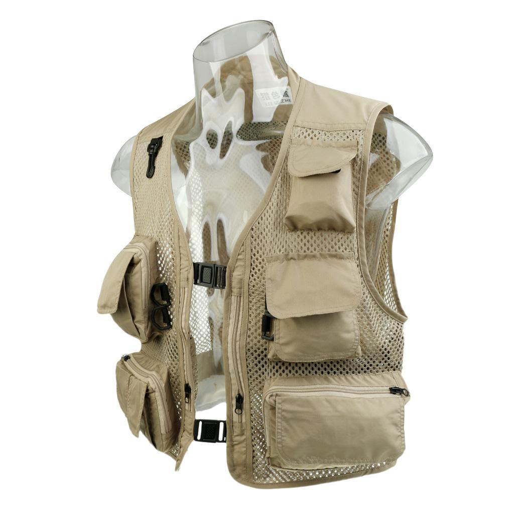 Men's Mesh Vest Multi-Pocket Outdoor Fishing Photography Waistcoat Jacke L
