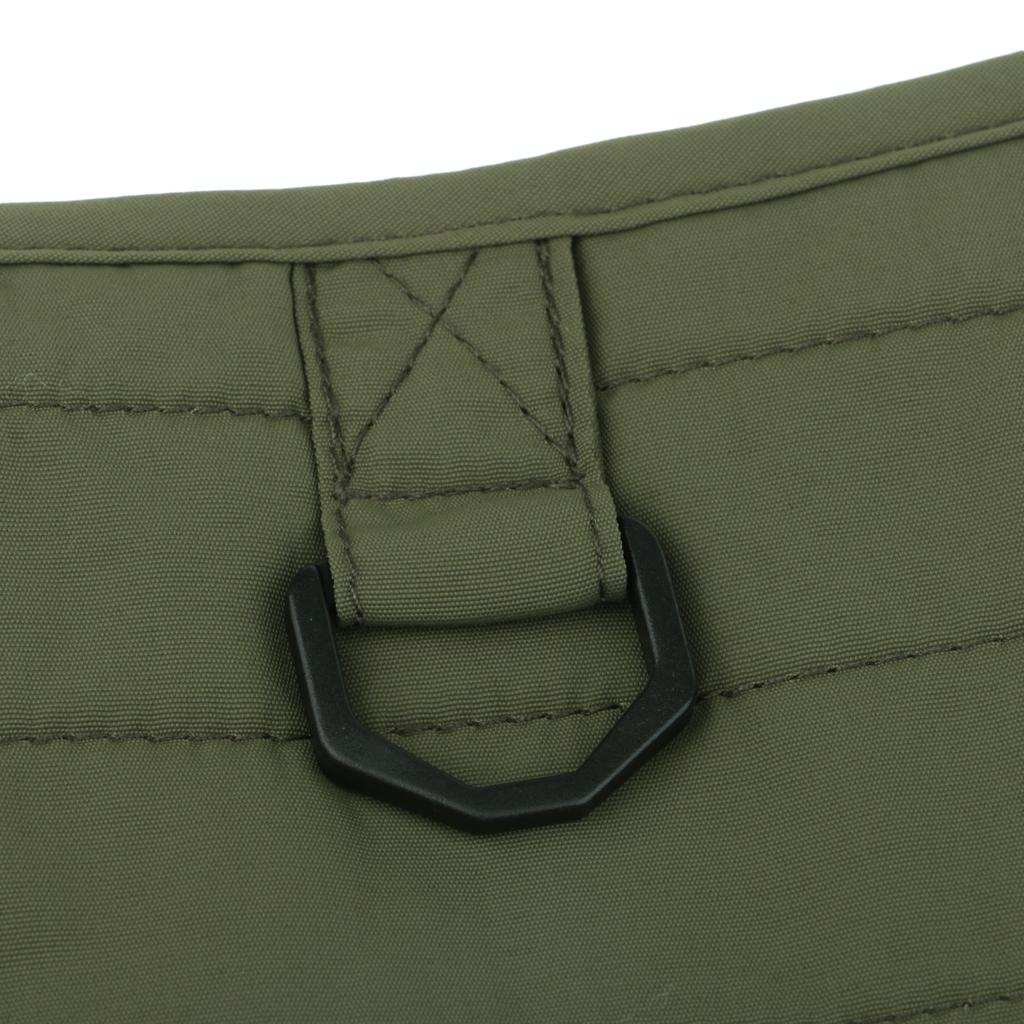 1 D-ring on the shoulder, 1 hook on the chest, you can use them to hang flashlight, interphone or other small items.