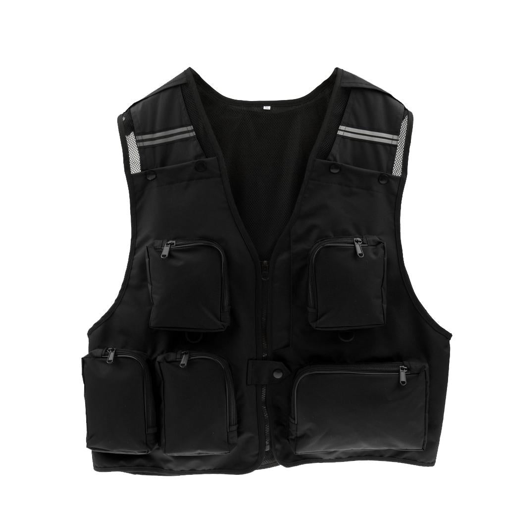 Men's Multi Pockets Hunting Fly Fishing Mesh Vest Waistcoat XL Black