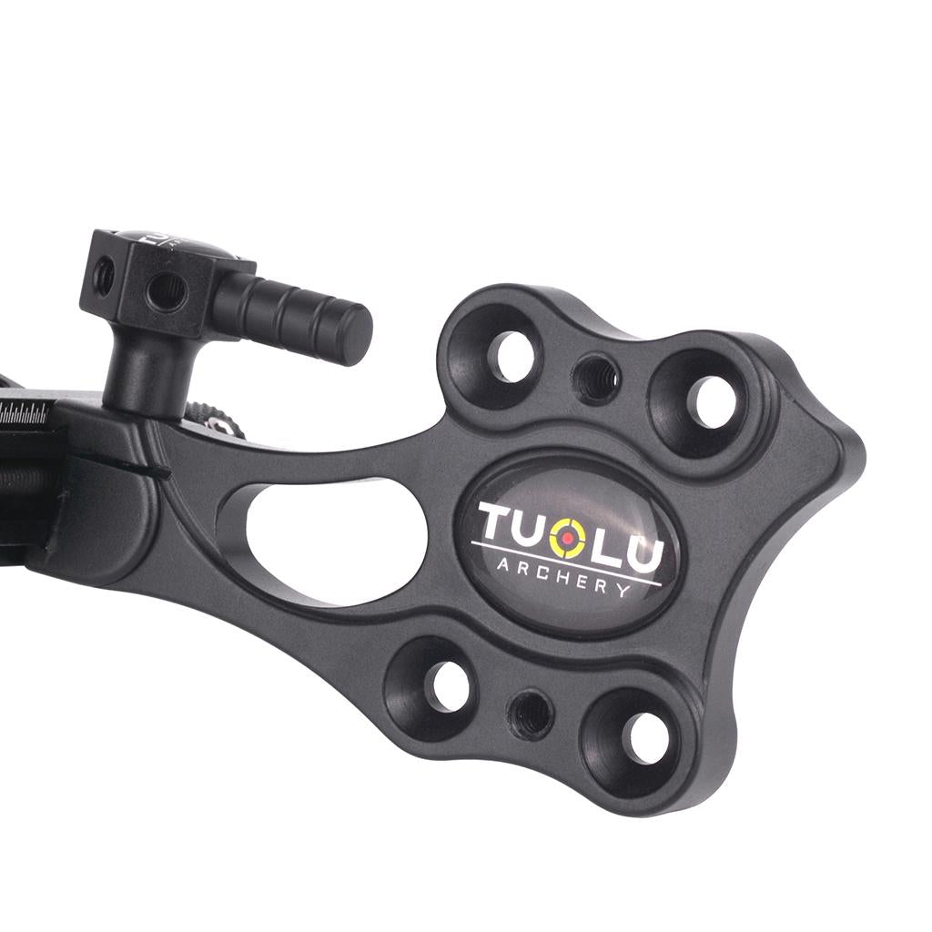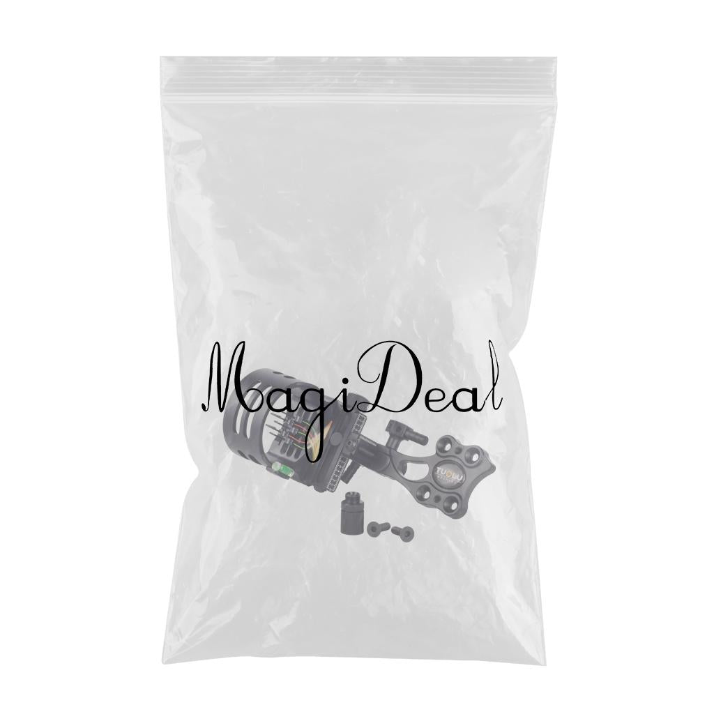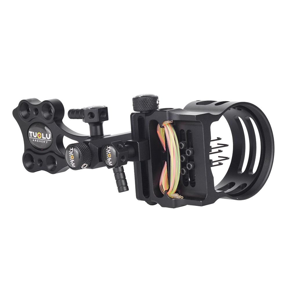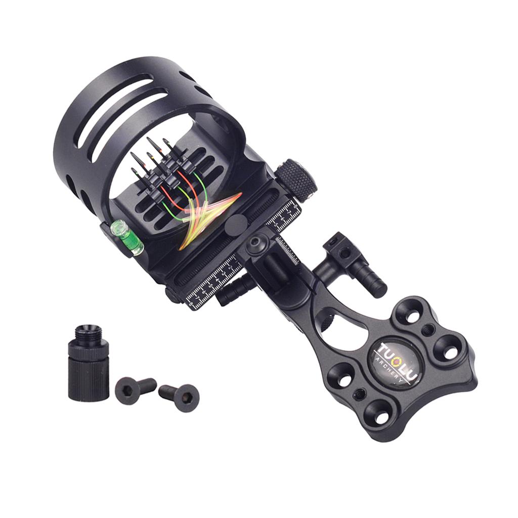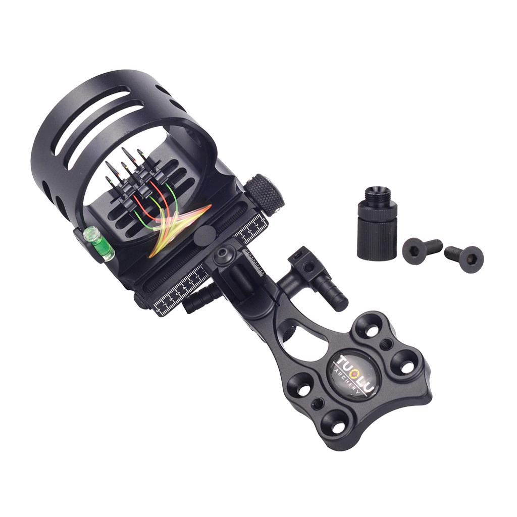 5 pins - .019 fiber optic pins. Stack tight pins, built-in sight level