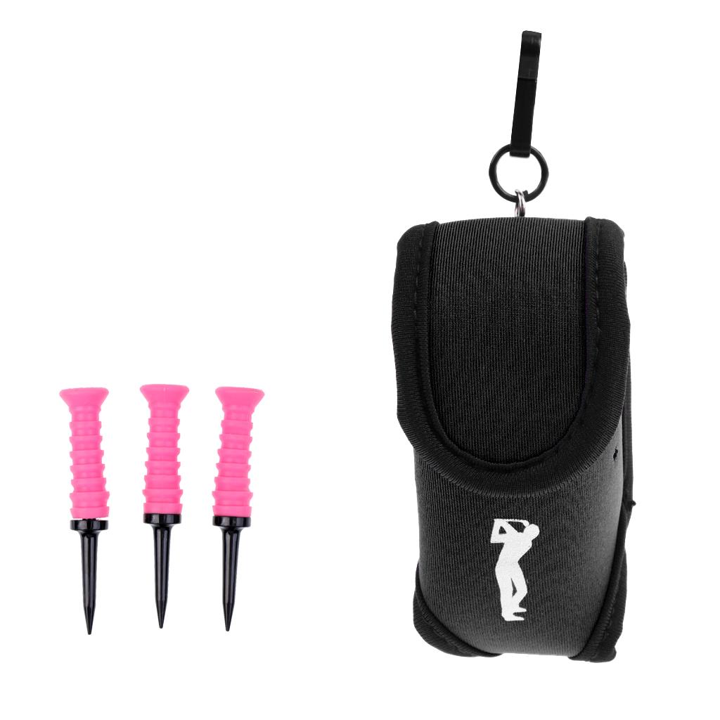 Set of black golf ball pouch + 3 pieces random color golf tees