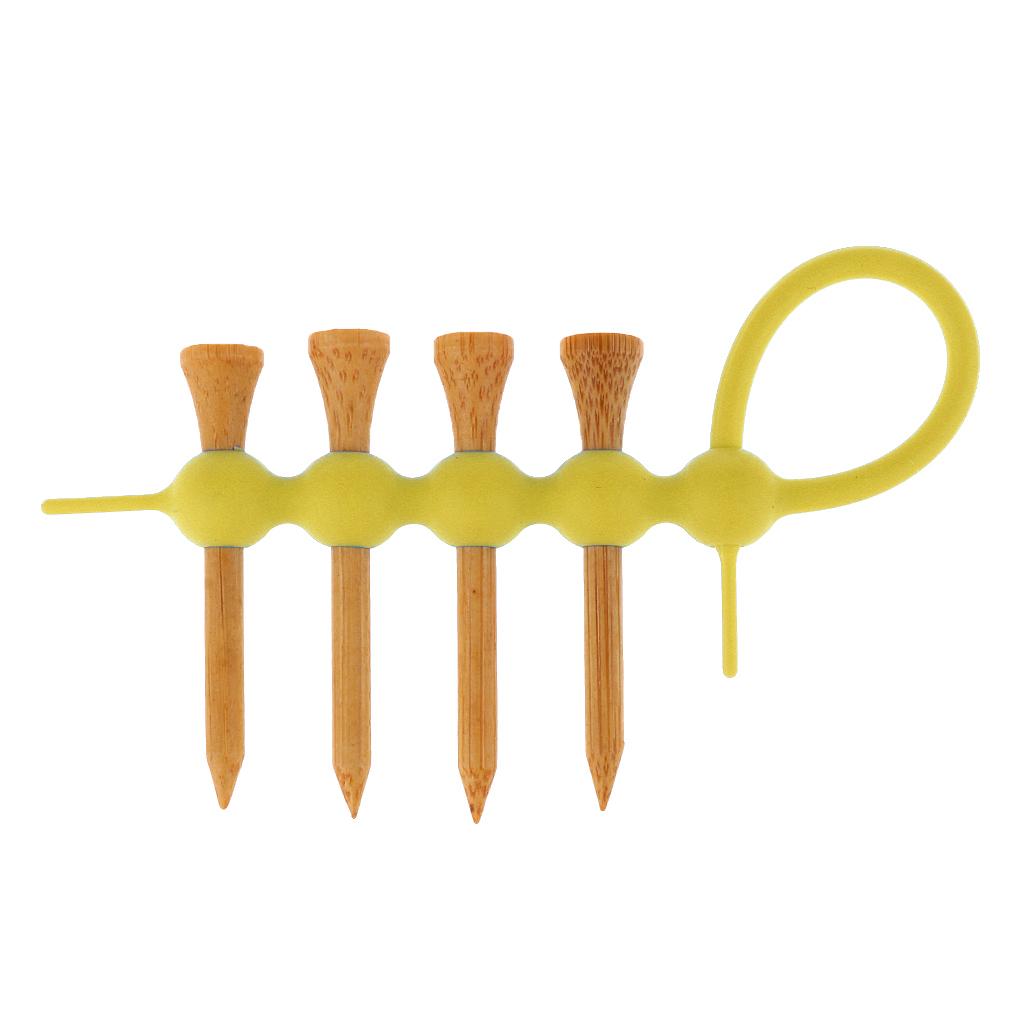 Mini Golf Tee Holder Tool Carrier Clip + 4 Pieces Wood Golf Tees Set Yellow